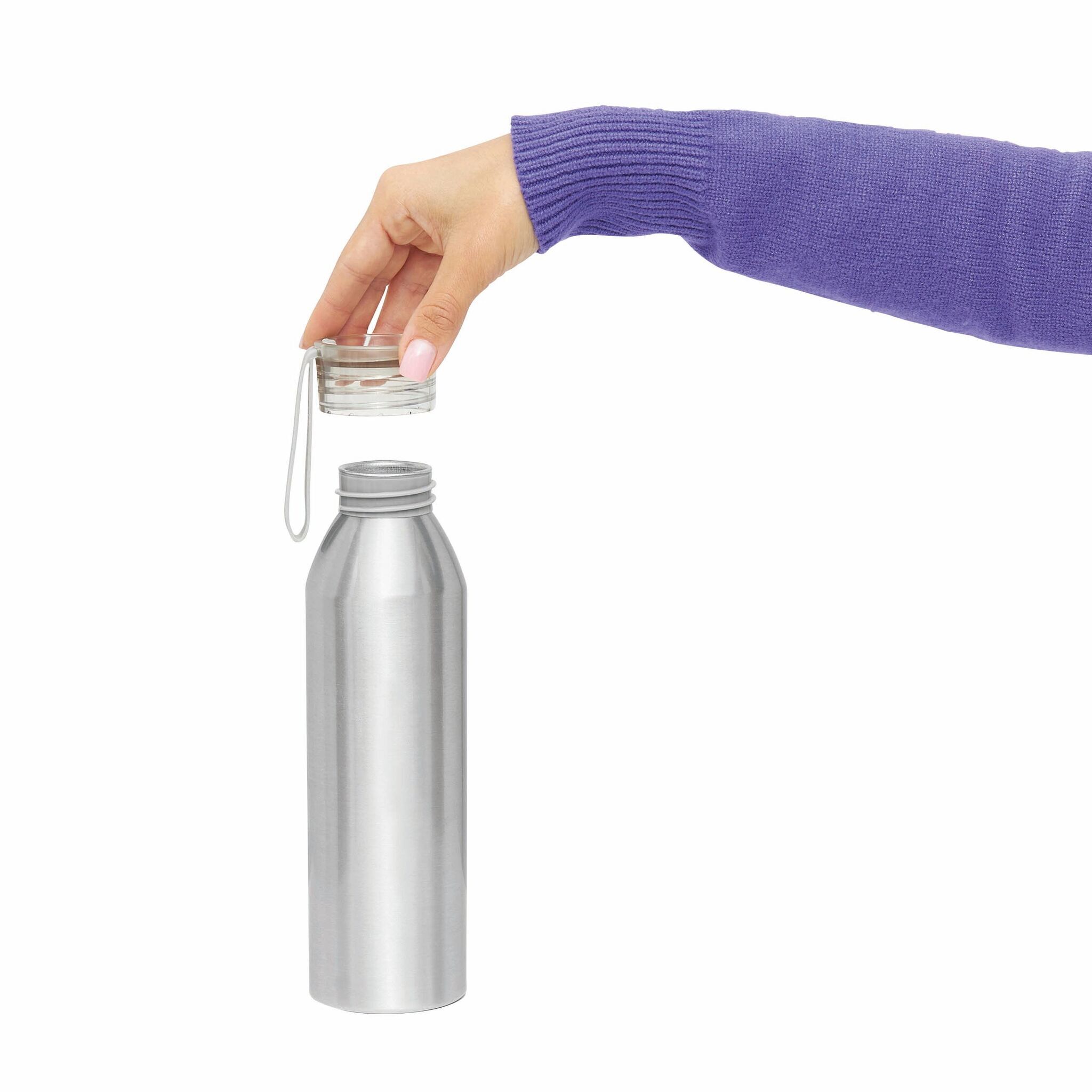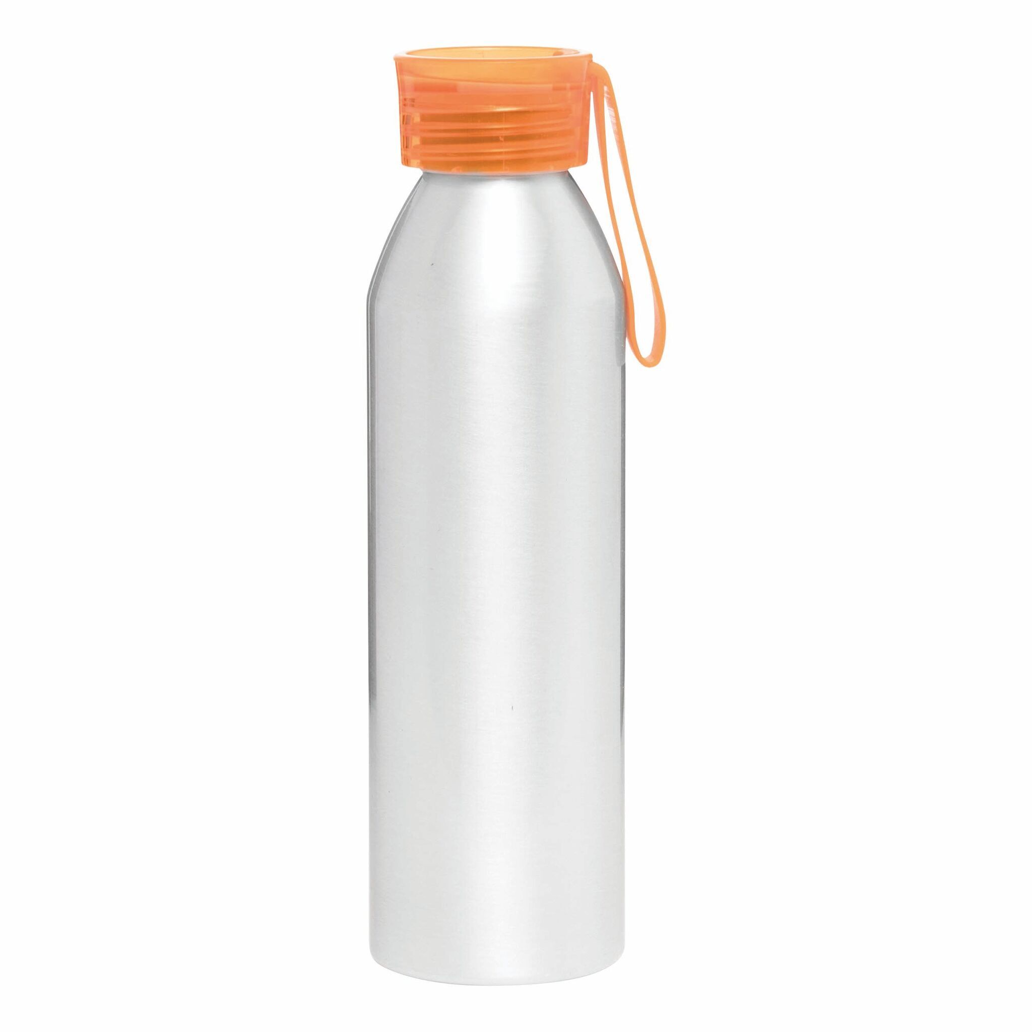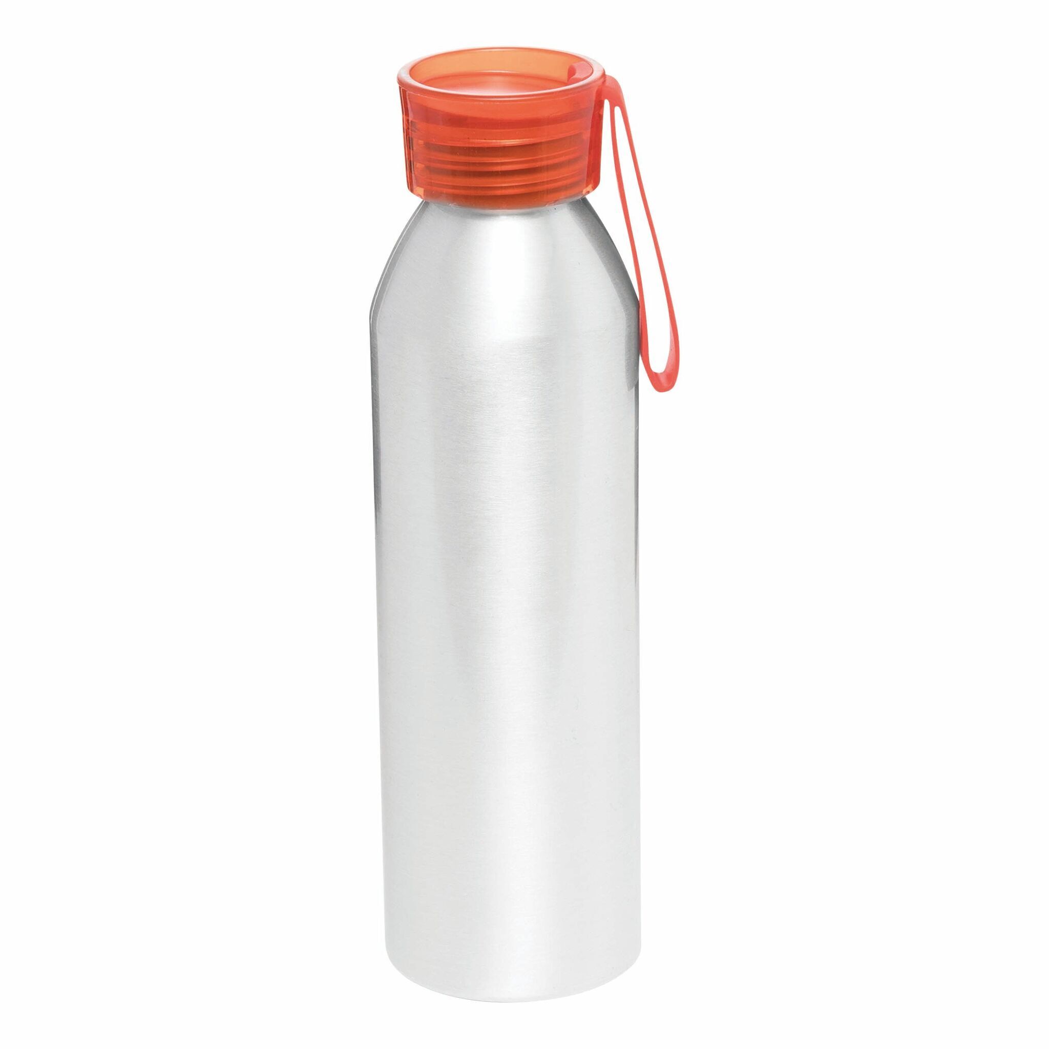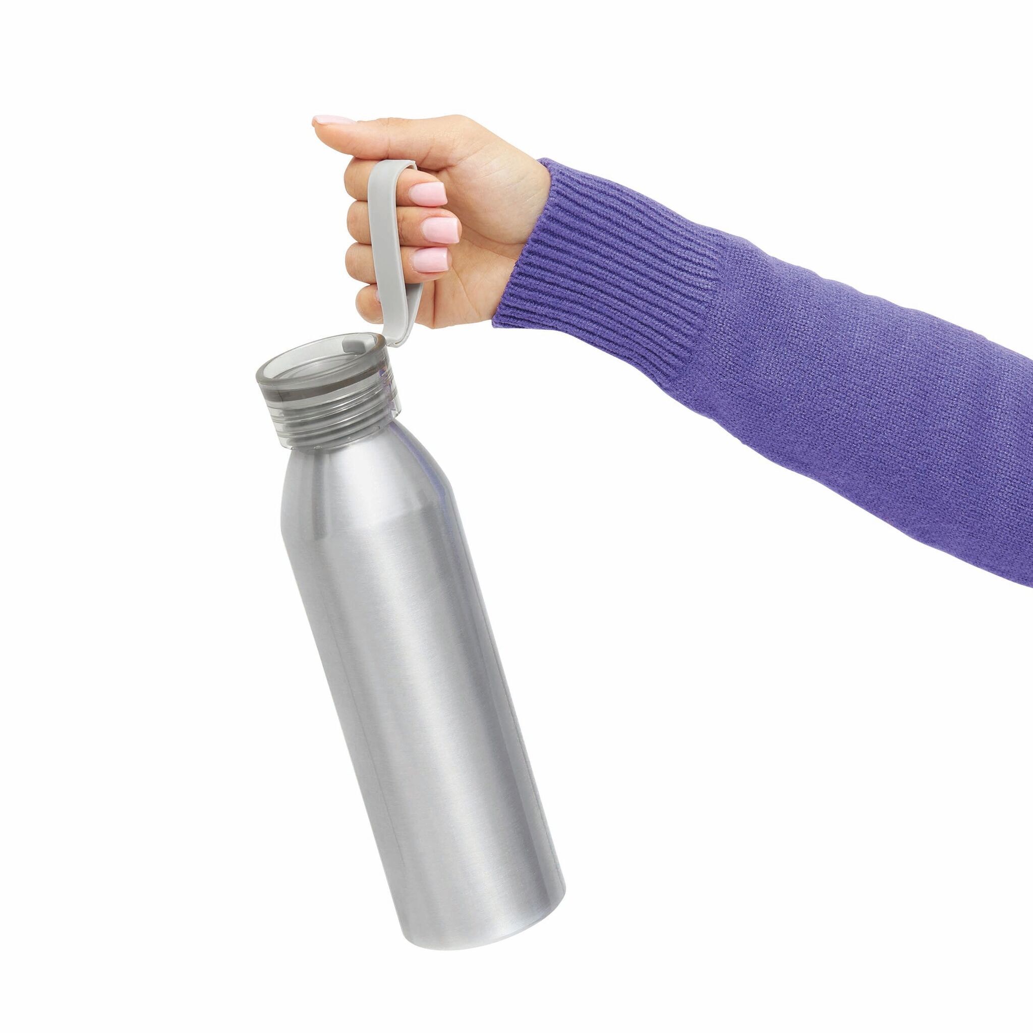 Алюминиевая бутылка COLOURED: цветная закручивающаяся пластиковая крышка, силиконовая петля на руку, объем: около 650 мл.
