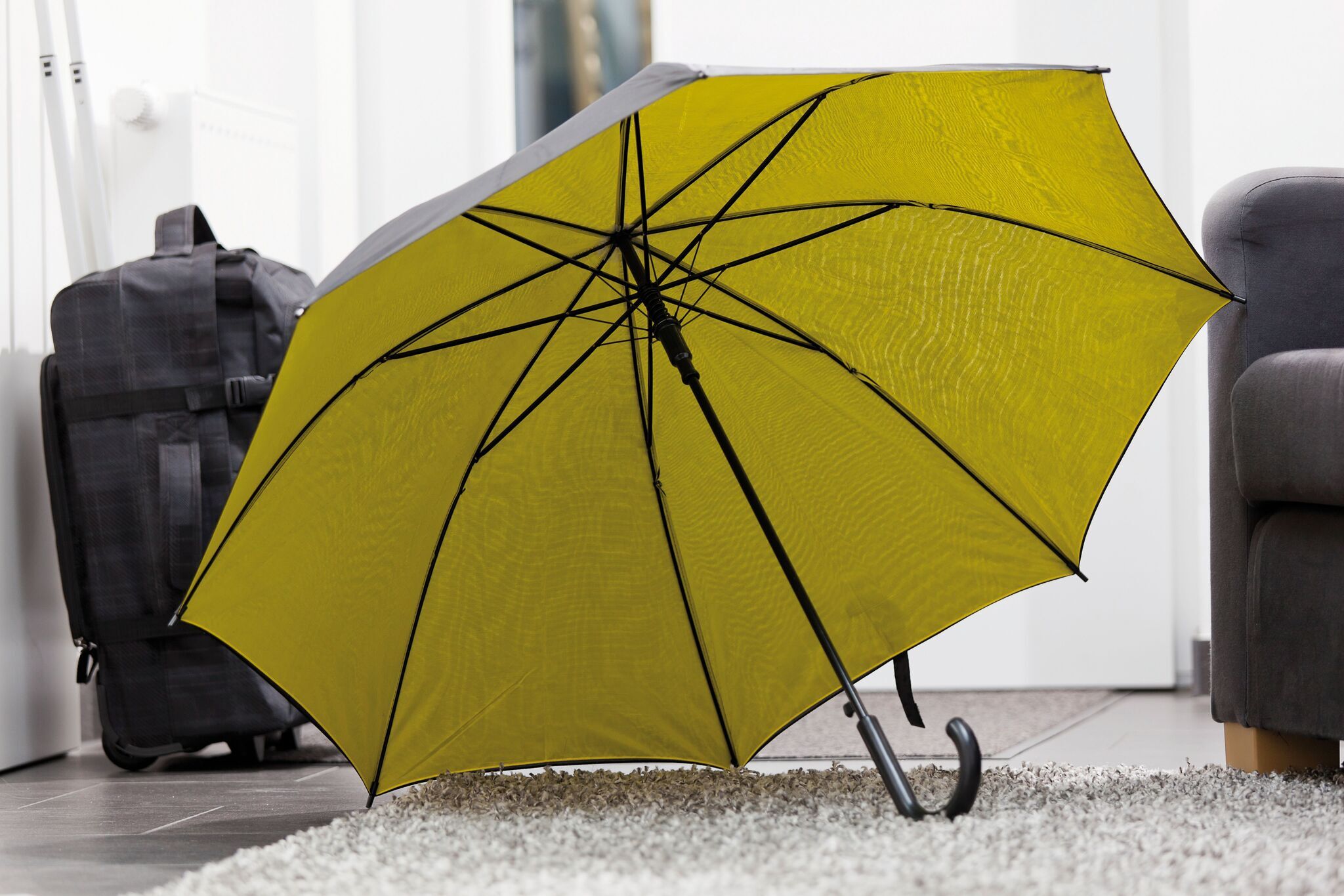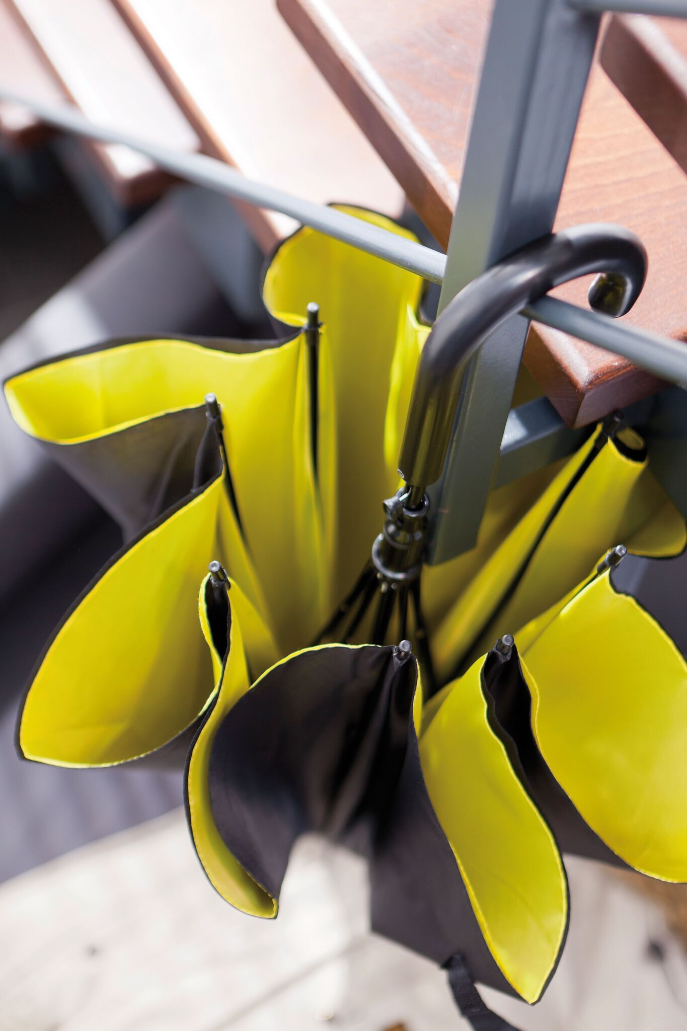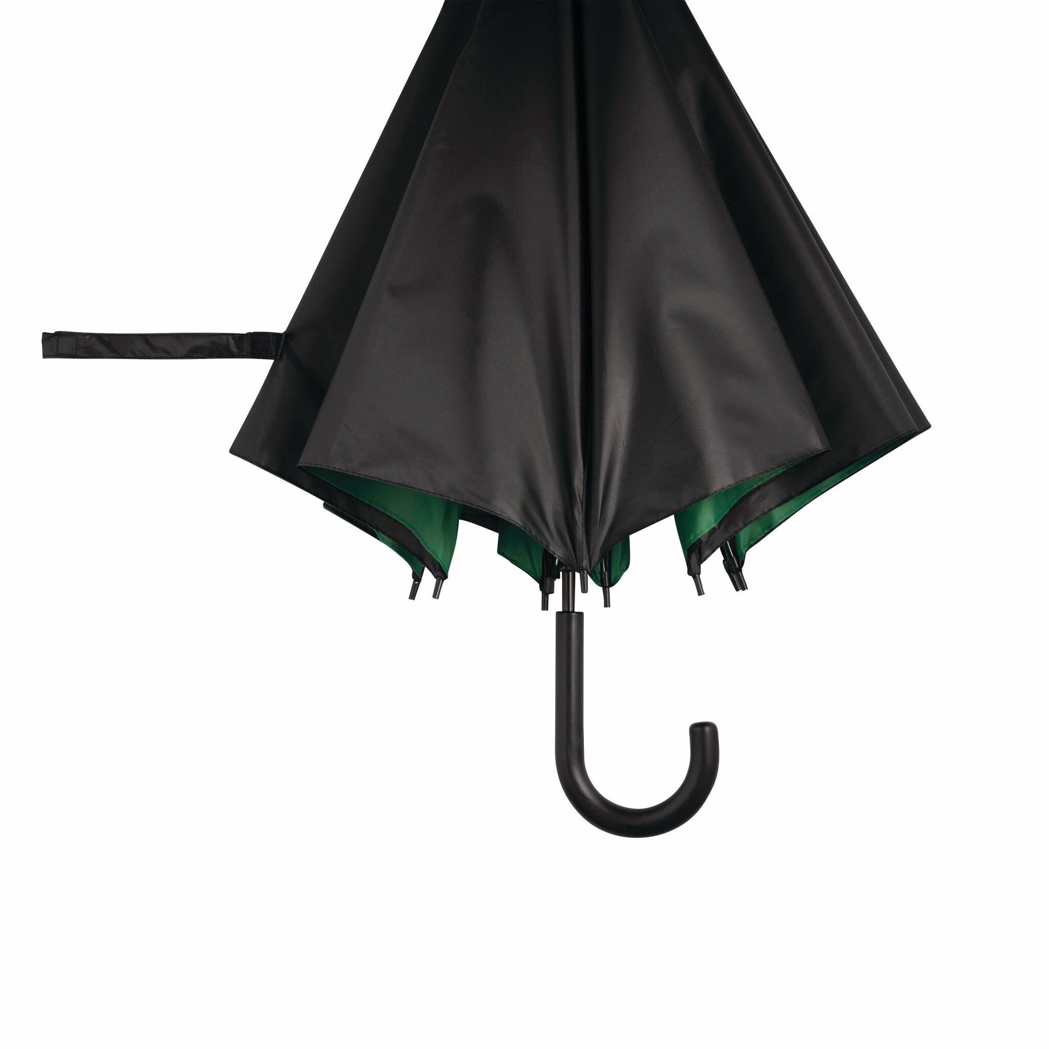 Aвтоматический зонт DOUBLY: металлические стержень и спицы, пластиковые наконечники спиц и ручка, двойной и двухцветный купол зонта из полиэстра, стяжная лента на липучке