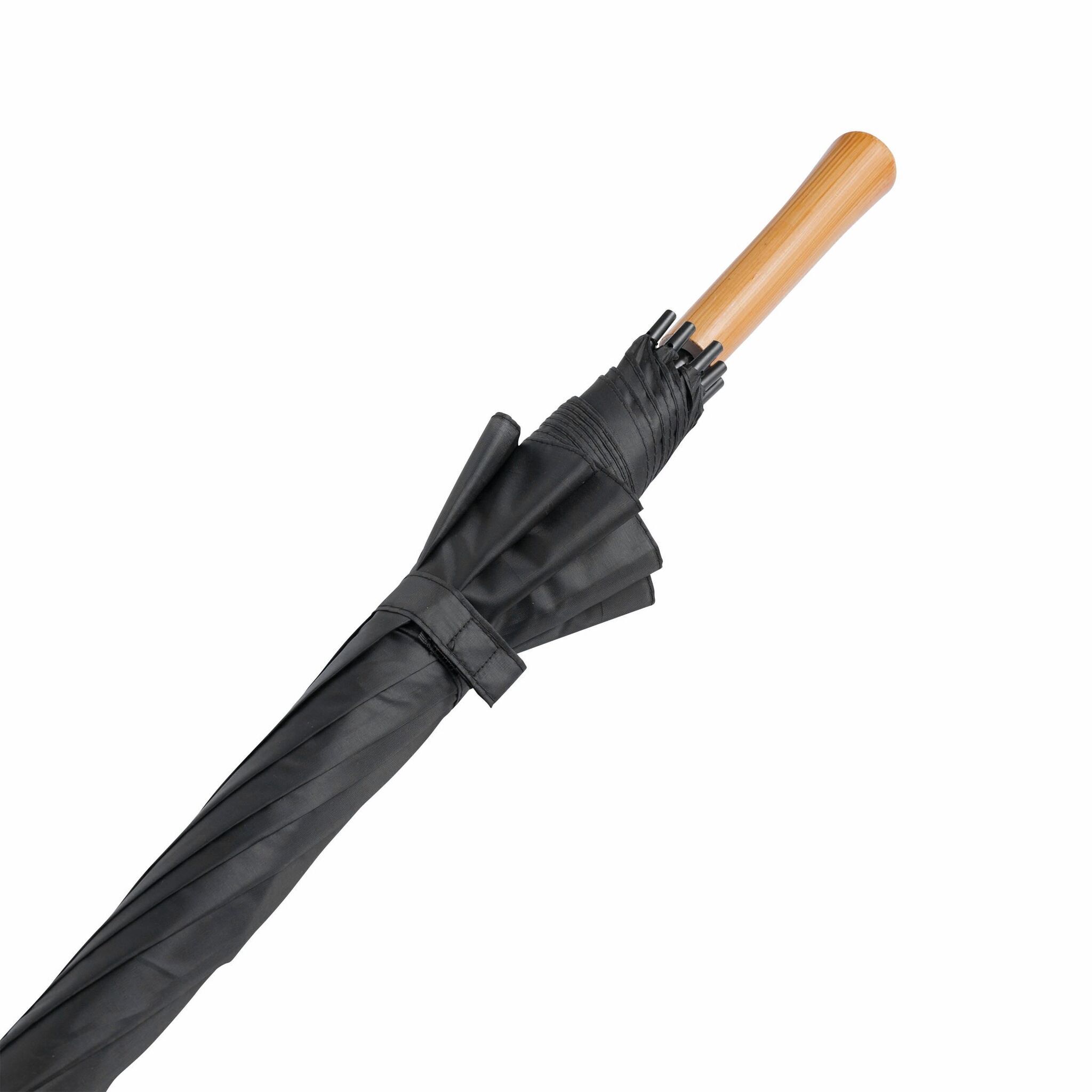 Автоматический зонт-трость LIMBO с металлическим стержнем и спицами, цветными пластмассовыми наконечниками, ручка- имитация дерева, купол- полиэстер, застежка- липучка Velcro.