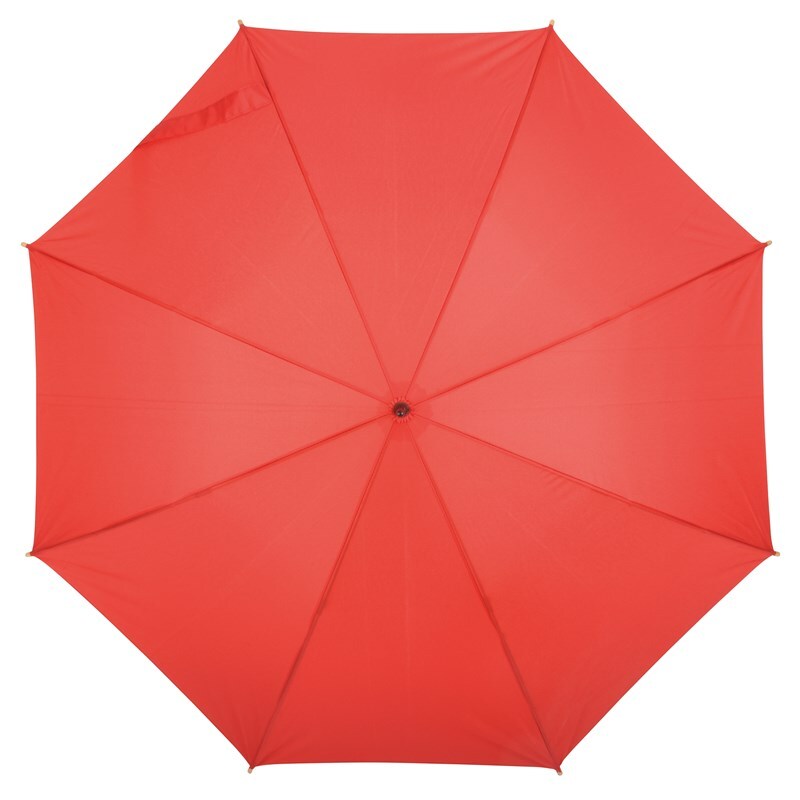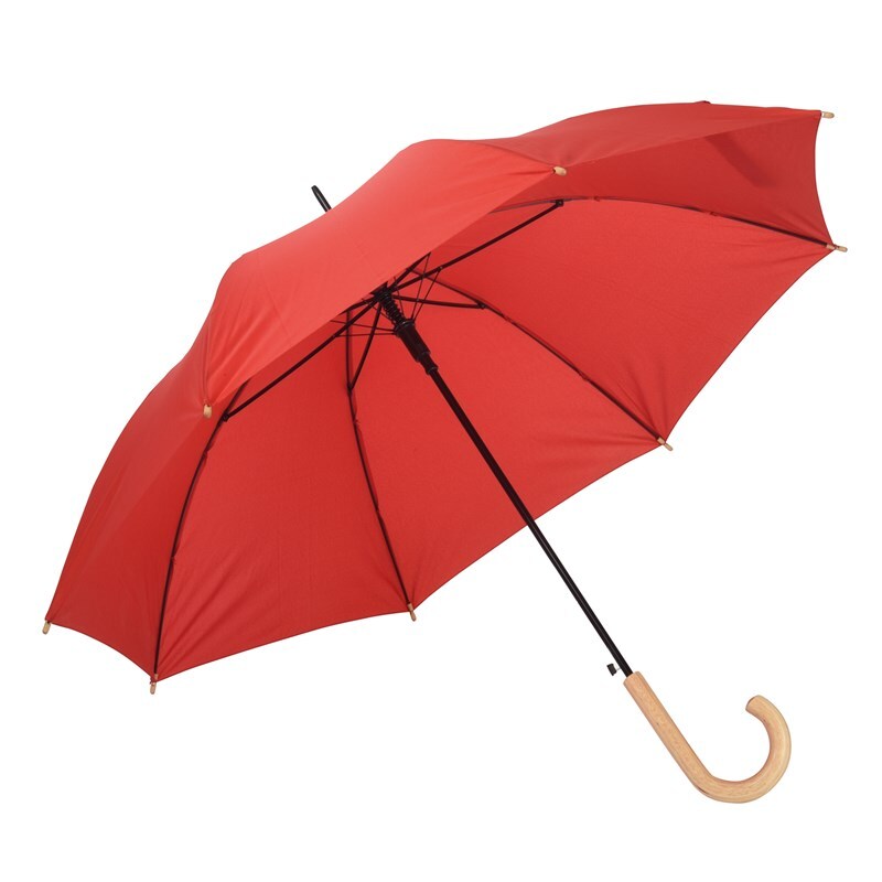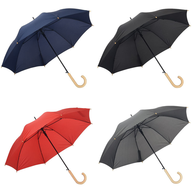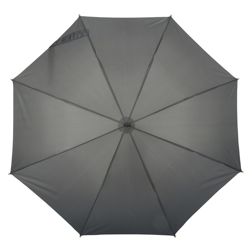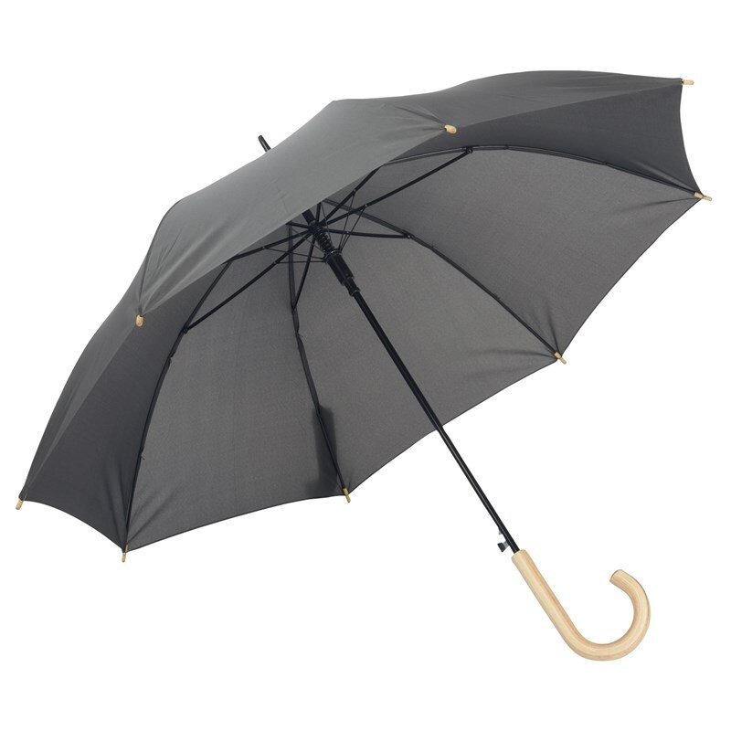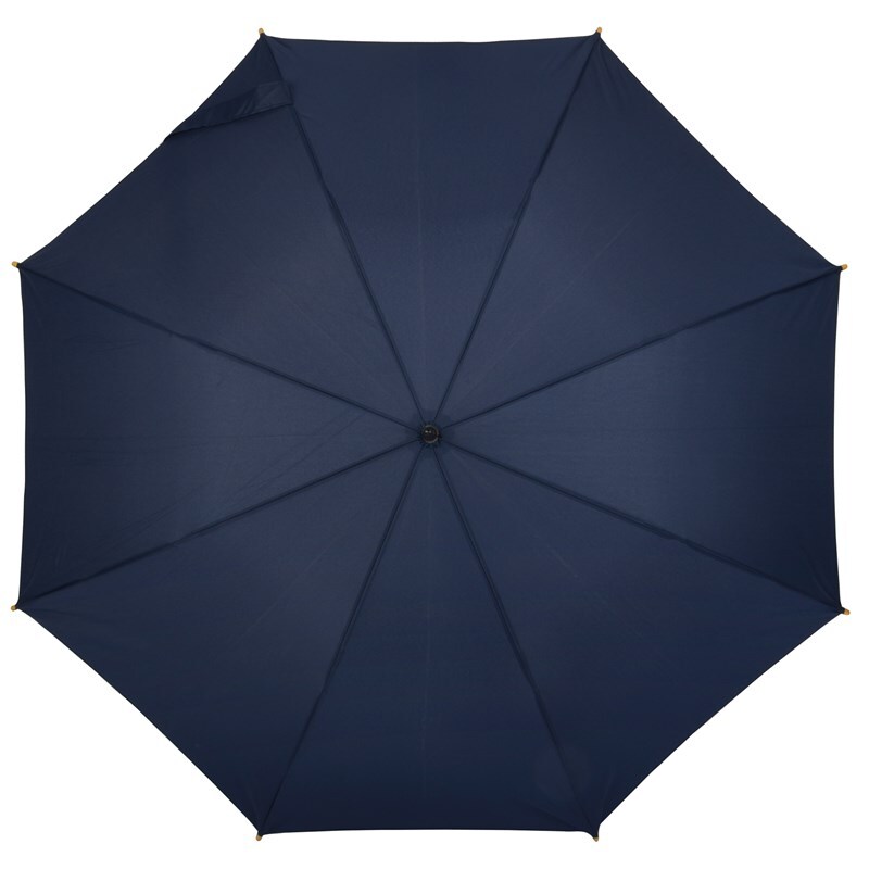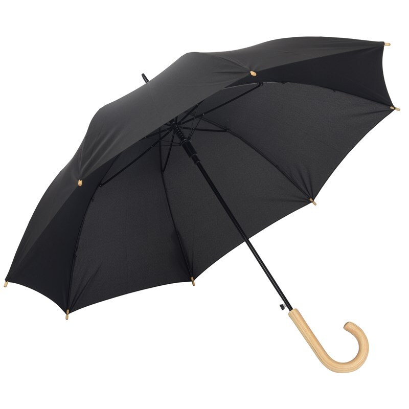 Автоматический зонт-трость LIPSI: с металлическим стержнем, стекловолоконными ребрами, деревянными наконечниками и деревянной рукояткой, навес из полиэфирного эпонжа, изготовленного из переработанных пластмасс (Global Recycle Standard), закрытие на липучку