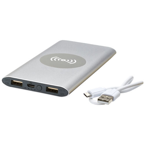 Беспроводное портативное зарядное устройство емкостью 8000 мАч с алюминиевым корпусом. Поддерживает беспроводную зарядку мощностью 5 Вт, а также имеет выход Micro USB для зарядки с помощью кабеля. Благодаря литий-полимерному аккумулятору емкостью 8000 мАч может зарядить смартфон до полного заряда несколько раз. Индикатор питания, постоянно показывающий уровень энергии. Встроенный порт Micro USB: Выход 5V/2A: 5 В/2 А. Выходная мощность беспроводной зарядки 5W. В комплект входит кабель для зарядки из TPE-пластика без ПВХ. Поставляется в стандартной подарочной коробке.
