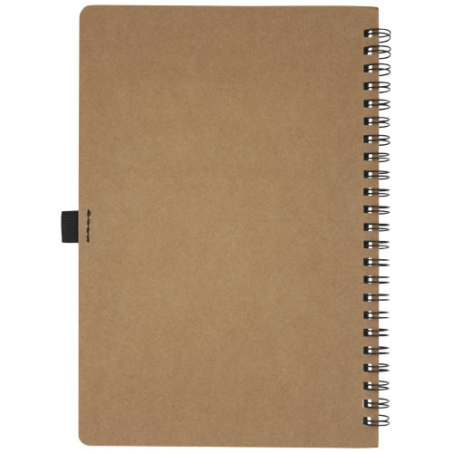 Блокнот на пружине формата A5, изготовленный из переработанного картона, с петлей для ручки. Содержит 70 листов в линию плотностью 60 г/м², изготовленных из каменной бумаги. В производстве каменной бумаги не используется дерево, а на сам процесс изготовления затрачивается гораздо меньше энергии в сравнении с производством переработанной или целлюлозной бумаги. Бумага водонепроницаемая и стойкая на разрыв. Имеет естественный белый цвет (без отбеливания).
