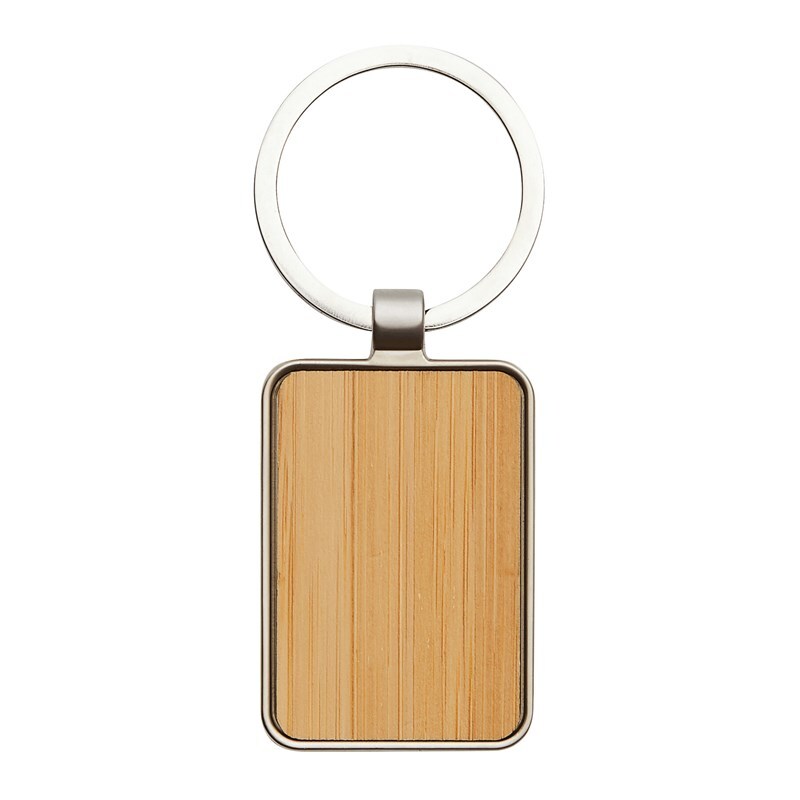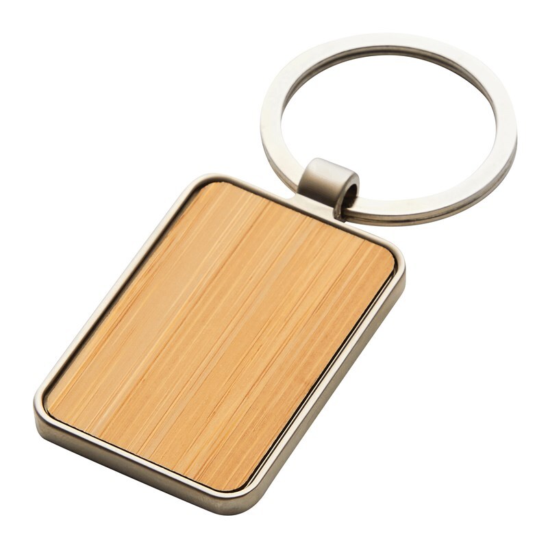 Металлический брелок для ключей в с бамбуковой вставкой.