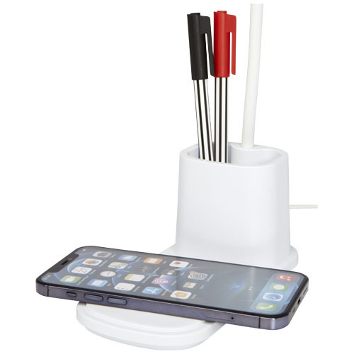 Настольная лампа со встроенным беспроводным зарядным устройством и держателем для карандашей. Лампа имеет 3 настройки освещения (теплое/холодное/среднее) и регулируется по высоте. Выходная мощность беспроводного зарядного устройства составляет 10 Вт, оно совместимо со всеми устройствами Qi (iPhone 8 и выше и устройствами Android, поддерживающими беспроводную зарядку).