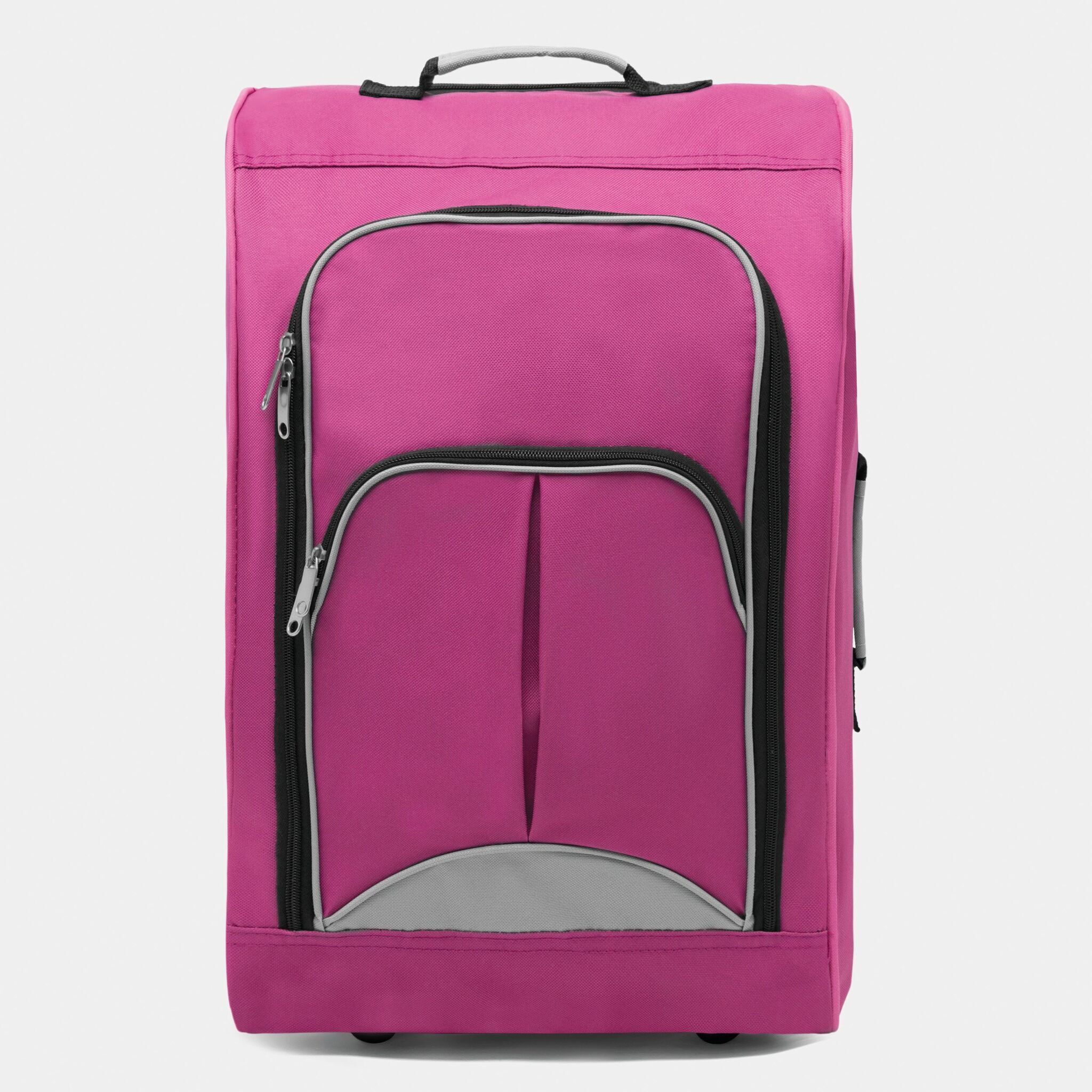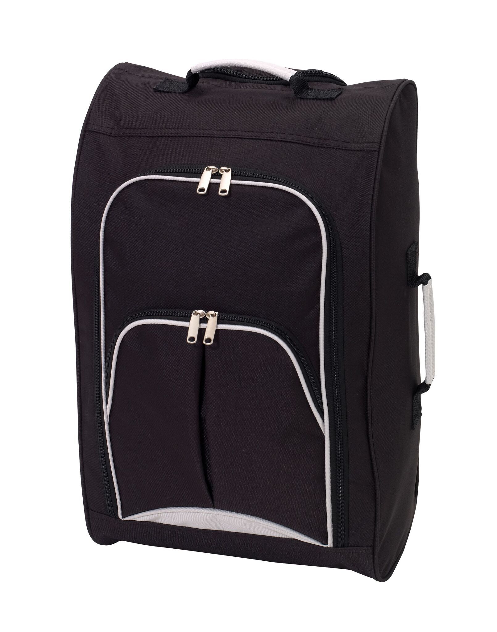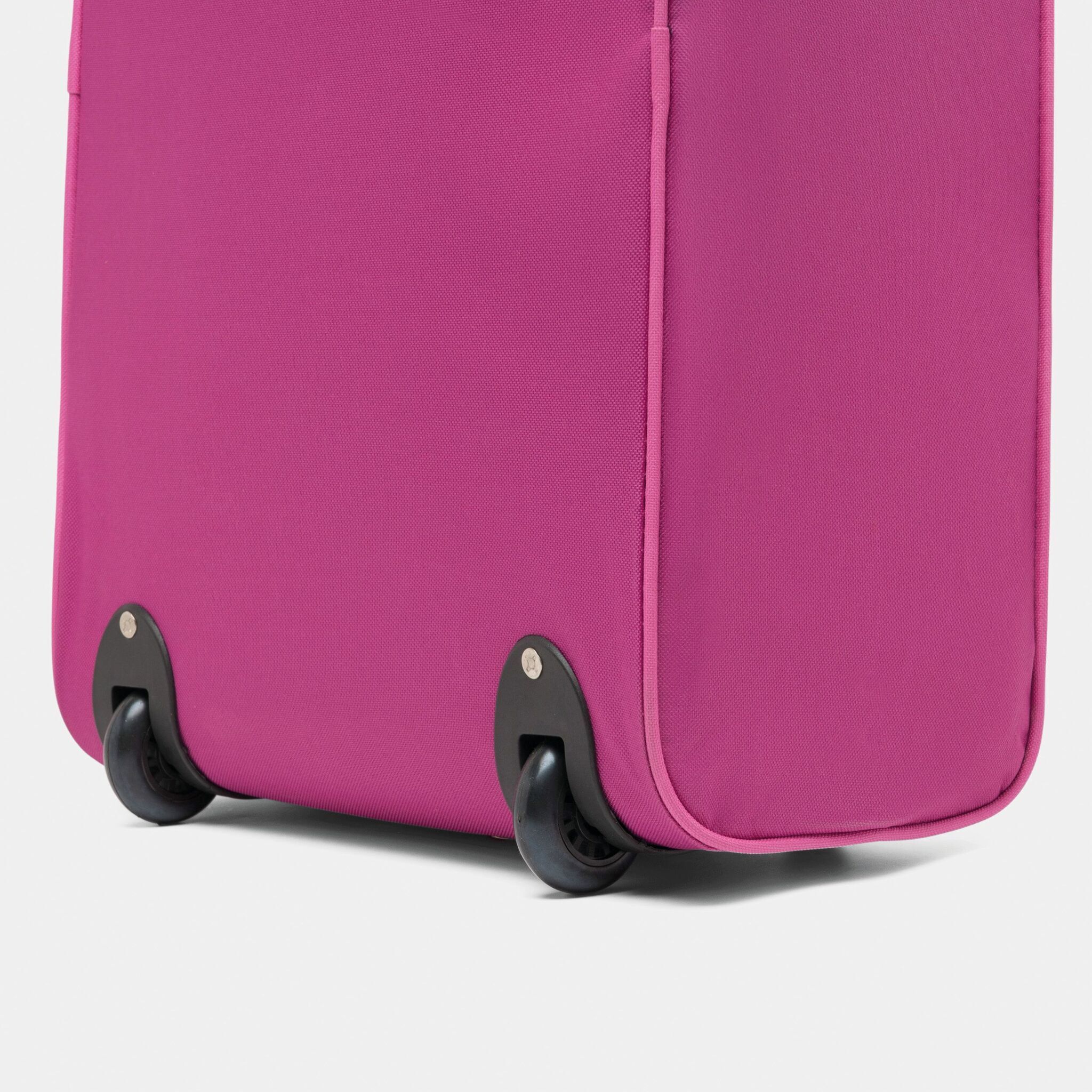 Чемодан на колёсах VIENNA: объёмное основное отделение на молнии, с внешним карманом на молнии, ручка сумки может быть скрыта полностью в отдельном отсеке с застежкой-молнией, 2 ручки для переноски чемодана, 2 боковые ножки сзади, размеры отвечают требованиям низкобюджетных авиалиний