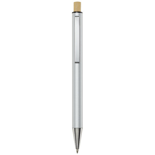 Шариковая ручка Cyrus изготовлена из переработанного алюминия, что требует меньше энергии, чем производство алюминия из сырья. Это также уменьшает количество отходов на свалках и помогает сохранять природные ресурсы для сокращения выбросов парниковых газов. Нажимная кнопка изготовлена из бамбука. Цвет чернил: синий. Длина непрерывной линии: 800 метров. Размер пера: 1,00 мм.