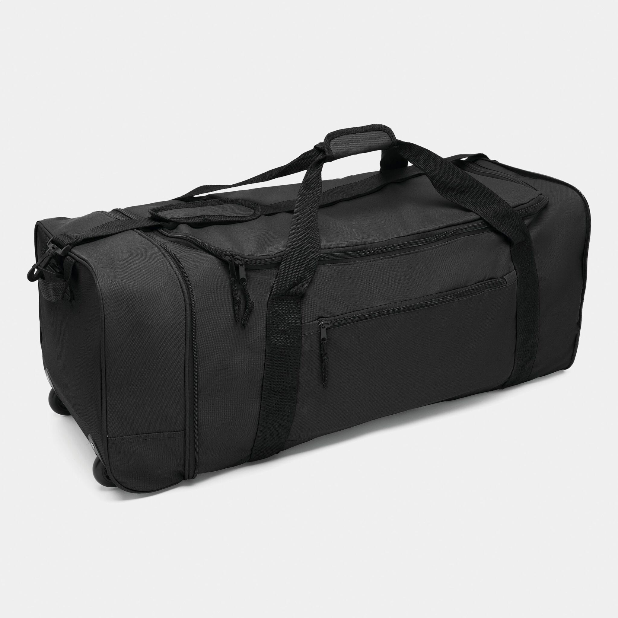 Дорожная сумка на колёсах HEX складная: лицевой карман на молнии, основной отсек на молнии, сбоку 1 карман на молнии, 2 ручки для переноски с ремнём на липучку, регулируемый съёмный плечевой ремень с наплечником, укрепленная ручка для переноски, колёса с легким ходом – идеальна в качестве дополнительной/запасной дорожной сумки.