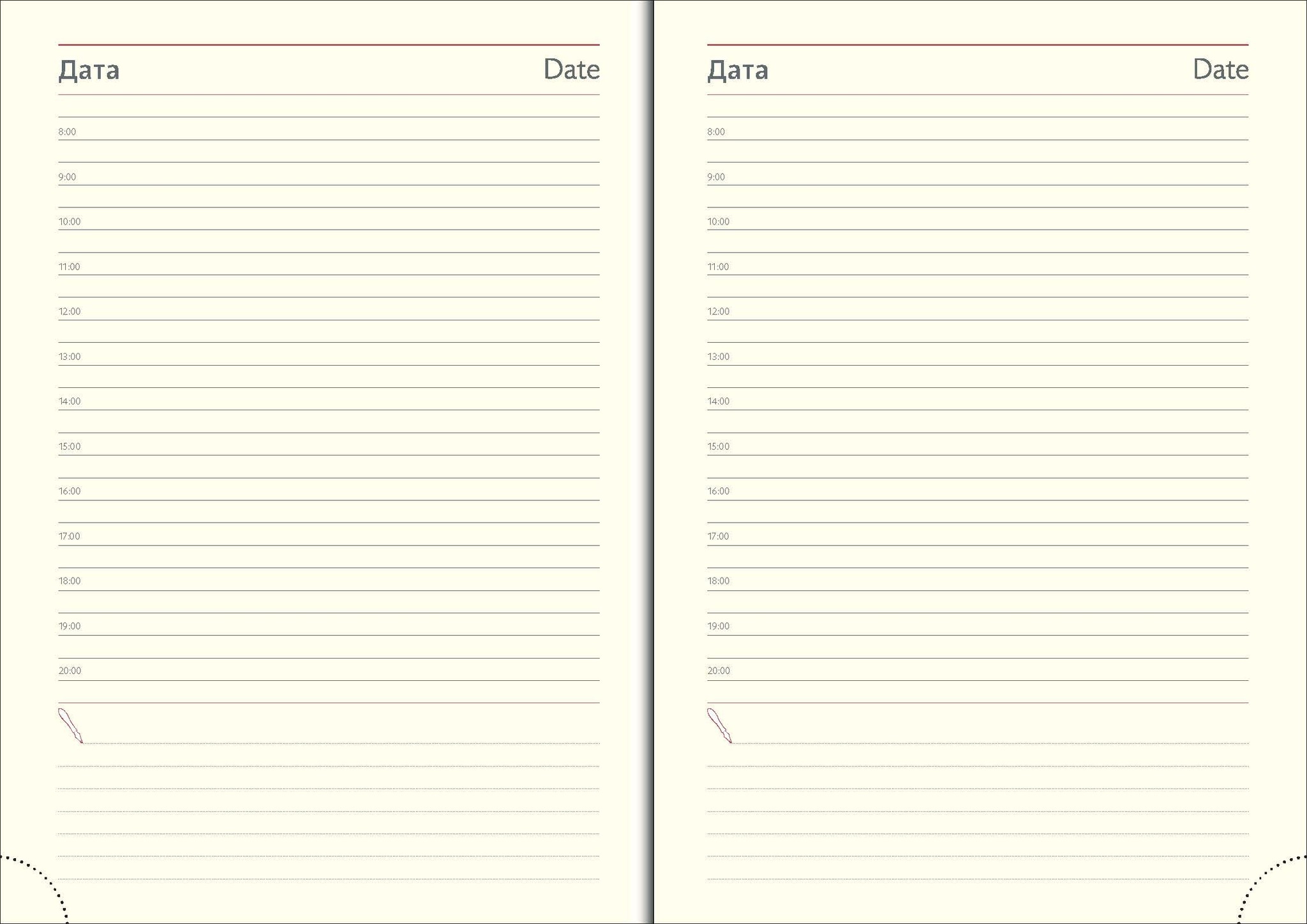 Недатированный ежедневник 145х205 мм 256 страниц, печать в 2 цвета, кремовая бумага 70 гр, блок шитый, каптал, ляссе, перфорированный уголок. Гибкая обложка из премиального итальянского кожзама.