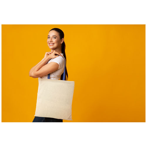 Благодаря ярким цветным ручкам эта сумка добавит всплеск цвета на каждом мероприятии, конгрессе или фестивале. Хлопковая сумка-тоут Nevada 100 г/м² - это бюджетная и лёгкая сумка с открытым основным отделением. Благодаря вместимости 7 литров эта сумка-тоут идеально подходит для переноски повседневных вещей, от телефона и кошелька до любимой книги или планшета. Ручки длиной 30 см делают эту сумку удобной для ношения с собой. Сделано в Индии и сертифицировано OEKO-Tex. Выдерживает вес до 5 кг.