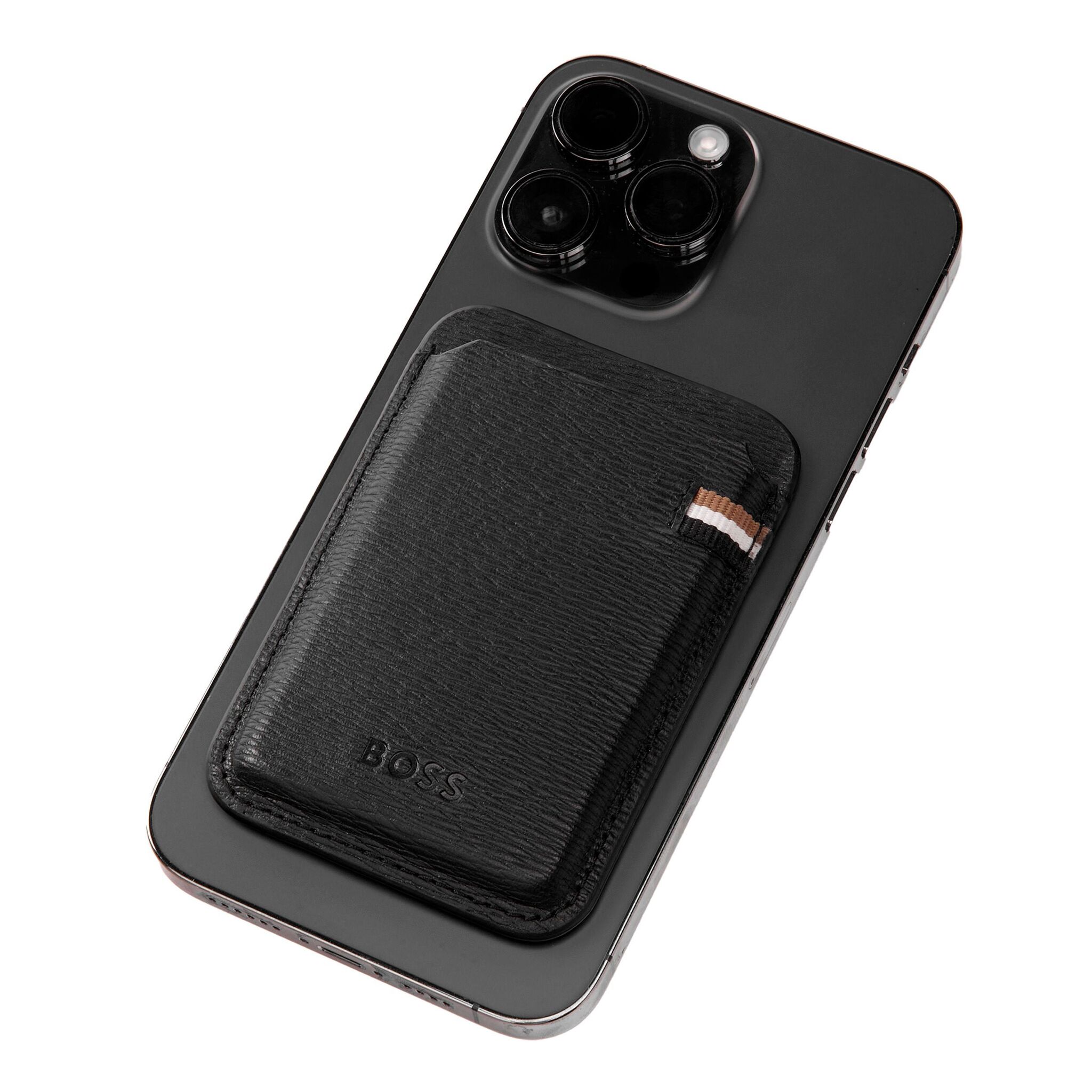 Наш магнитный держатель для карт изготовлен из натуральной кожи высшего качества. Он оснащен системой MagSafe, которая позволяет прикрепить его к задней части любого телефона, оснащенного этой технологией. Эта версия Iconic выполнена из красивой черной текстурированной кожи и имеет тонкий тисненый логотип BOSS. Последний штрих — подкладка с монограммой, которая добавляет еще один тонкий элемент брендинга. Еще одной отличительной чертой этой культовой версии является трехцветный текстильный флаг, который украшает все предметы этой серии. Несмотря на свой минималистичный и компактный дизайн, он все равно может вмещать до 5 карт.