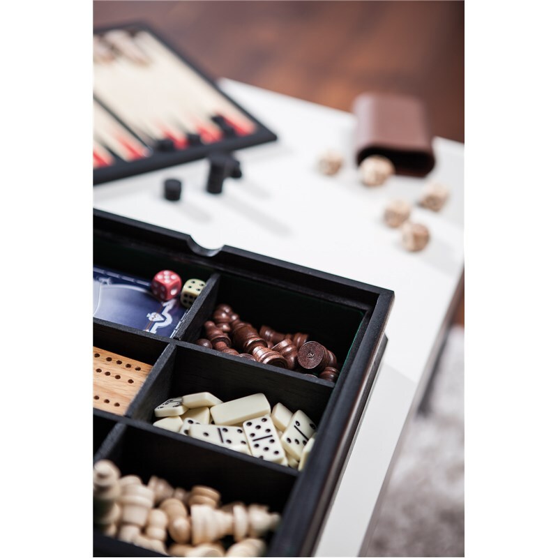 Kомплект игр FAMILY-FUN шахматы, триктрак, шашки, домино, карты и кости, упакован в деревянную коробку