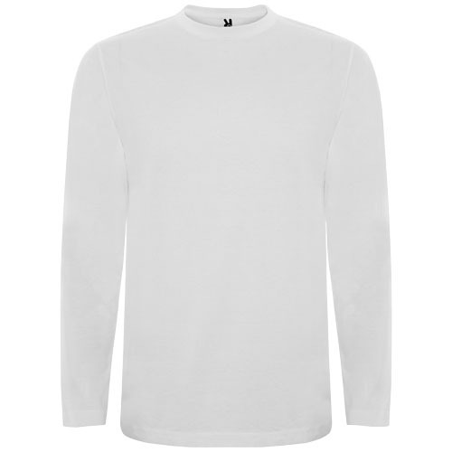 Футболка из трубчатой ткани с длинными рукавами и с четырехслойной круглой горловиной. Усиленные закрытые швы горловины и на плечах. Без манжет. Съемная этикетка. Трубчатая модель для взрослых размеров и боковые швы для детских размеров.