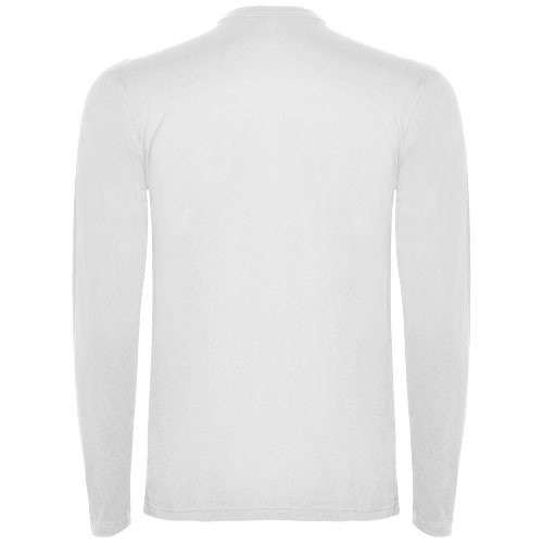 Футболка из трубчатой ткани с длинными рукавами и с четырехслойной круглой горловиной. Усиленные закрытые швы горловины и на плечах. Без манжет. Съемная этикетка. Трубчатая модель для взрослых размеров и боковые швы для детских размеров.
