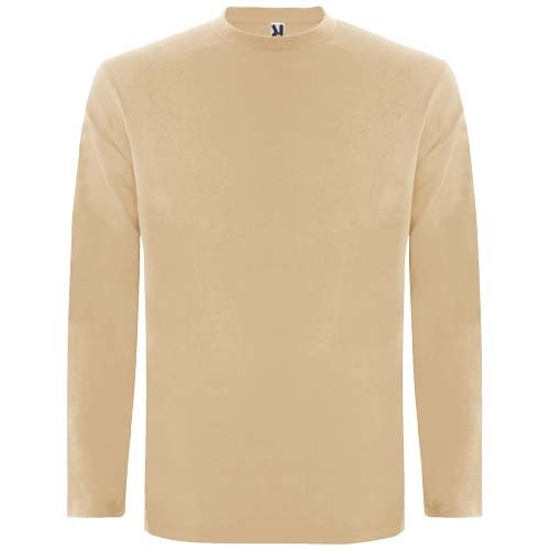 Футболка из трубчатой ткани с длинными рукавами и с четырехслойной круглой горловиной. Усиленные закрытые швы горловины и на плечах. Без манжет. Съемная этикетка. Трубчатая модель для взрослых размеров и боковые швы для детских размеров.