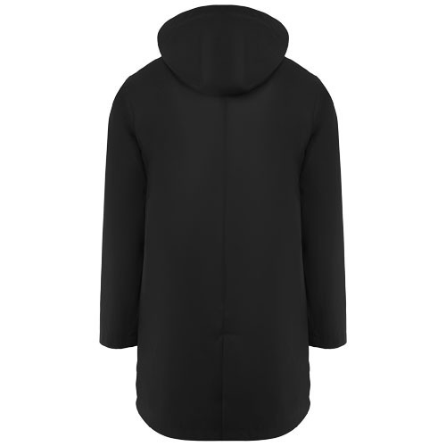 Водонепроницаемый плащ. Капюшон с козырьком. Молнии и швы с термической проклейкой. Контрастные детали черного цвета. Два боковых кармана на молнии. Разрез сзади снизу. Съемная этикетка. Водонепроницаемый.