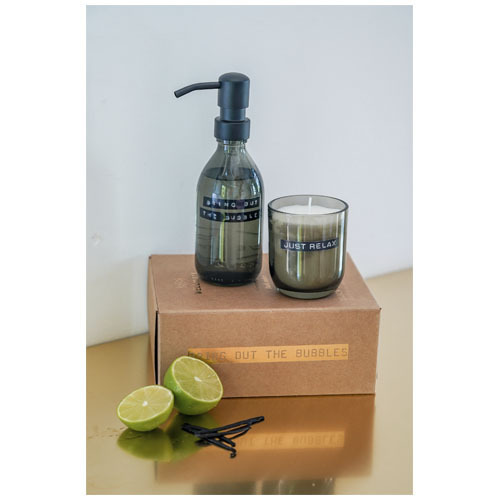 Этот прекрасный набор состоит из дозатора мыла для рук и ароматизированной свечи с приятным ароматом темного янтаря. Мыло для рук поставляется в стеклянной бутылке объемом 250 мл с дозатором, является биоразлагаемым и не содержит парабенов, полиэтиленгликоля пальмового масла, SLS и лаурет сульфат натрия. Ароматическая свеча (150 г) изготовлена из рапсового воска и полностью сгорает, делая банку пригодной для повторного использования. Сделано в Нидерландах.