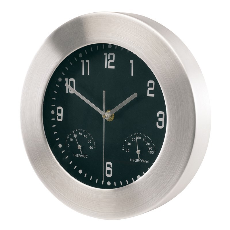 Настенные алюминивые часы JUPITER с термометром, гигрометром и с круглой широкой рамкой