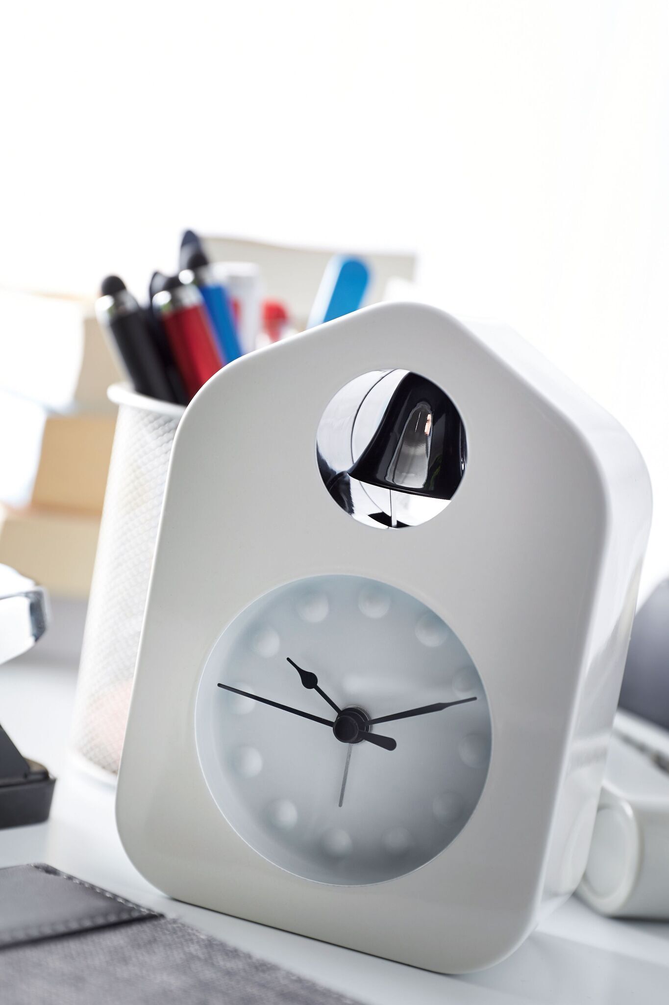 Настольные часы BELL в виде колокольни с аналоговым дисплеем времени, белый циферблат и черные стрелки часов, функция будильника с металлическим колоколом