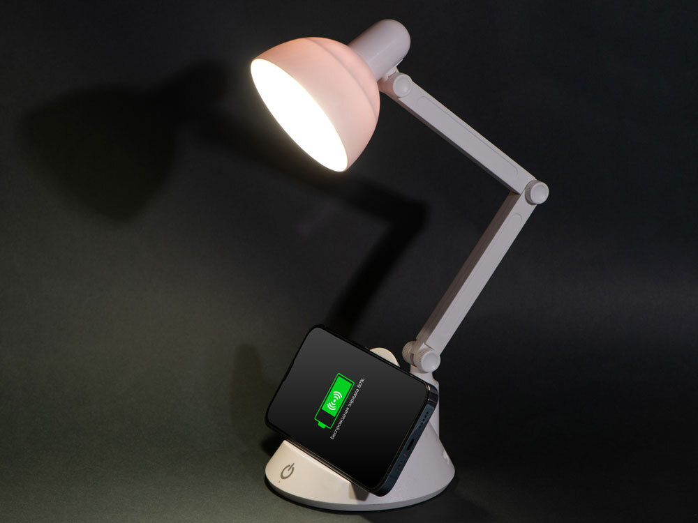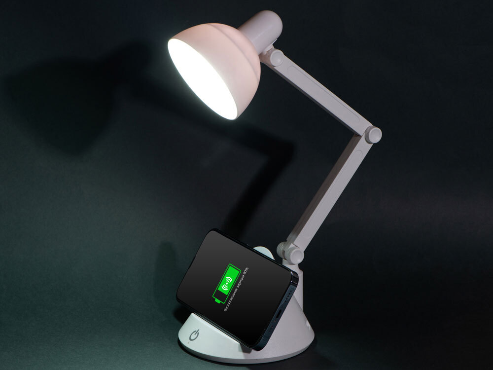 Лампа «Bendy», напоминающая большую настольную, куда сложнее, чем кажется на первый взгляд! Не просто светит, но и заряжает смартфон при помощи встроенной беспроводной зарядки. Светильник компактный, его можно зафиксировать в различных положениях. Имеет три режима освещения — теплый, нейтральный и холодный. 1. беспроводная зарядка Qi-совместимых устройств. 2. три режима освещения: теплый, нейтральный, холодный. 3. фиксируется в различных положениях. 4. Диммер: при длительном нажатии интенсивность света регулируется