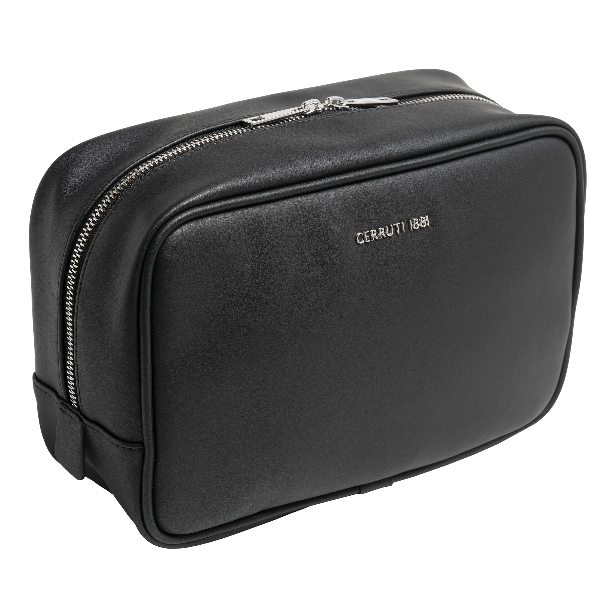 Косметичка "Zoom" с минималистским дизайном и современным видом изготовлена из гладкого черного материала с блестящей хромированной металлической надписью. 1 небольшой внутренний карман на молнии. Поставляется в элегантной хлопковой сумке Cerruti 1881.