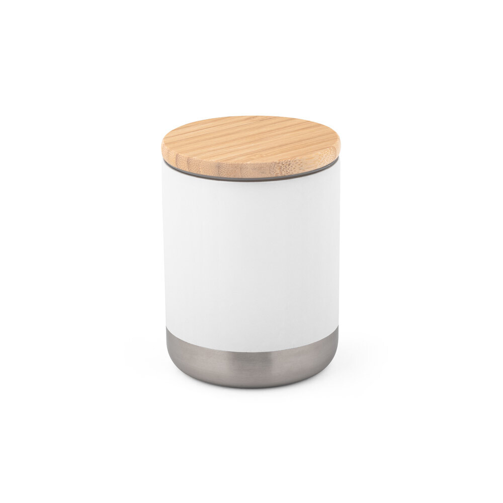 Чашка из нержавеющей стали с вакуумной изоляцией и двойным корпусом, с бамбуковой крышкой с силиконовым уплотнением для дополнительной защиты. Чашка вмещает до 370 мл и сохраняет напитки горячими в течение 5.5 часов и холодными в течение 24 часов. Эта чашка имеет порошковое покрытие, которое придает ей большую долговечность и прочность. Поставляется в картонной коробке. диаметр 80 x 106 мм