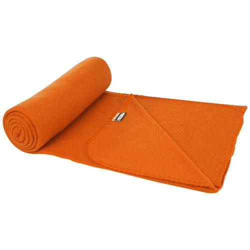 Одеяло из флиса, вторичного ПЭТ, подходит для использования в помещении и на улице. Поставляется с сумкой для переноски из вторичного ПЭТ 190T с застежкой на шнурке. Упаковано в полиэтиленовый пакет из переработанного материала. Размер сумки: длина 34 см, диаметр 13 см.