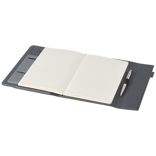 Сертифицированная RCS папка-органайзер Liberto частично изготовлена из переработанного полиэстера, бывшего в употреблении, что делает данную папку более экологичным выбором, поскольку она помогает сократить использование первичного сырья. Имеет петлю для ручки, карман-гармошку и 64 листа в линейку кремового цвета из переработанной бумаги плотностью 80 г/м² из экологически чистых источников. Ручка и другие аксессуары, представленные на фотографиях, в комплект поставки не входят.