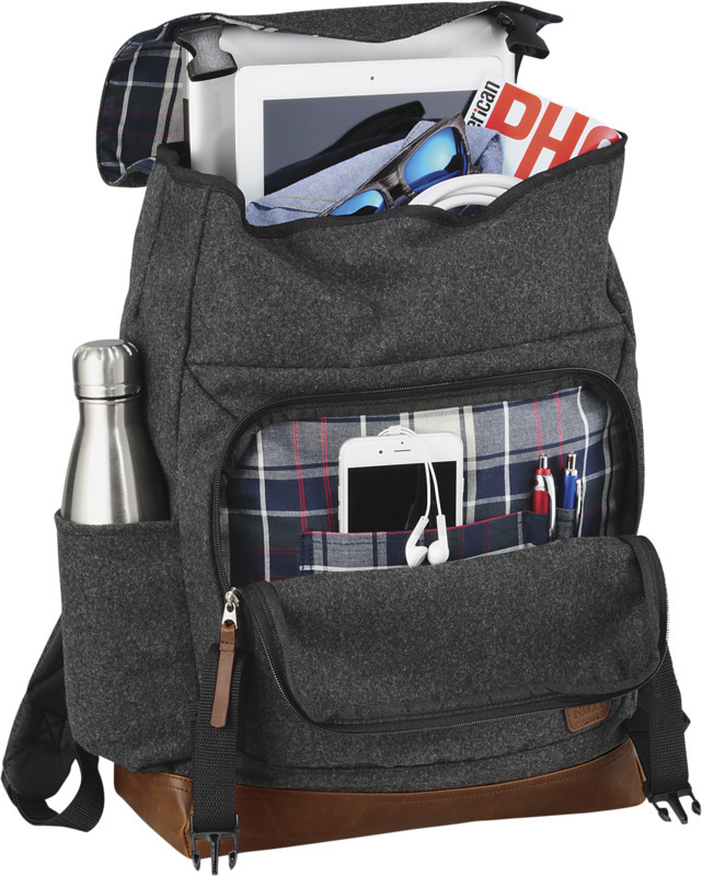 Часть серии Campster от Field & Co.®. Вдохновение было заимствовано у образа ретро скаута и дополнено современными нуждами. Стильный рюкзак выполнен из полиэстера и шерсти с виниловыми акцентами. В рюкзак можно поместить ноутбук до 15". Внутренняя организационная панель и карман для быстрого доступа к вещам.
