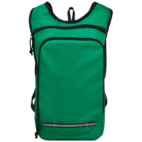 Рюкзак Trails изготовлен из 100% переработанной по стандарту GRS водоотталкивающей ткани и имеет один передний карман на молнии и одно основное отделение на молнии, а также отделение для гидросистемы. Светоотражающие полосы для видимости и сетчатая задняя часть для комфорта при переноске делает его отличным экологичным выбором для активного отдыха.