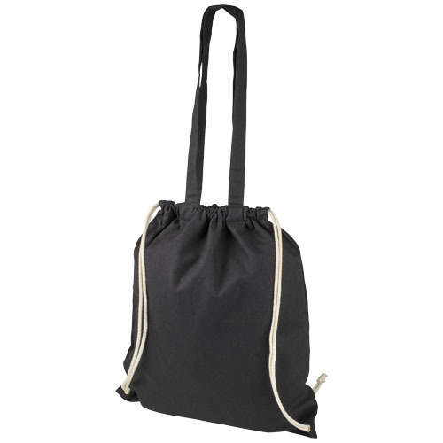 Многофункциональный хлопчатобумажный мешок с длинными ручками и затягивающим шнурком, который можно носить в качестве сумки для покупок или рюкзака. Большой основной отсек, закрывающийся затяжкой шнурка. Имеет две выпадающие ручки длиной 31 см. Вместимость: 6 л, выдерживает до 5 кг веса.