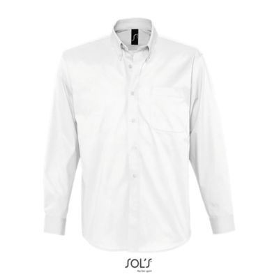 РУБАШКА МУЖСКАЯ ИЗ ХЛОПКОВОГО ТВИЛА С ДЛИННЫМ РУКАВОМ. Прямой крой; Длинный рукав; Классический воротник на 2 пуговицах; Регулируемые манжеты на пуговицах и разрез рукава "капуцин"; Планка с 7 пуговицами в цвет изделия; Нагрудный карман слева; 2 запасные пуговицы