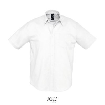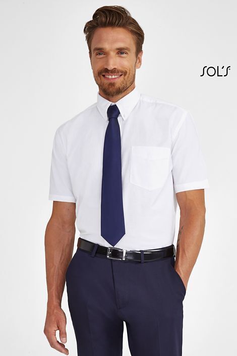 РУБАШКА МУЖСКАЯ «ОКСФОРД» С КОРОТКИМ РУКАВОМ. Прямой крой; Короткий рукав; Воротник с 2 пуговицами; Планка с 7 пуговицами в цвет изделия; Нагрудный карман слева; 2 симметричные складки на спине