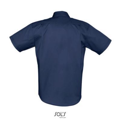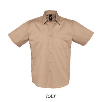 РУБАШКА МУЖСКАЯ ИЗ ХЛОПКОВОГО ТВИЛА С КОРОТКИМ РУКАВОМ. Прямой крой; Короткий рукав; Классический воротник на 2 пуговицах; Планка с 7 пуговицами в цвет изделия; Нагрудный карман слева; 2 запасные пуговицы