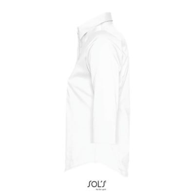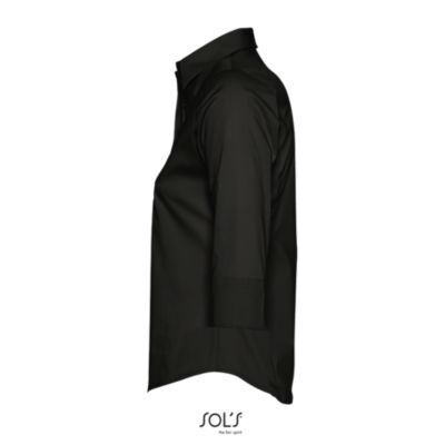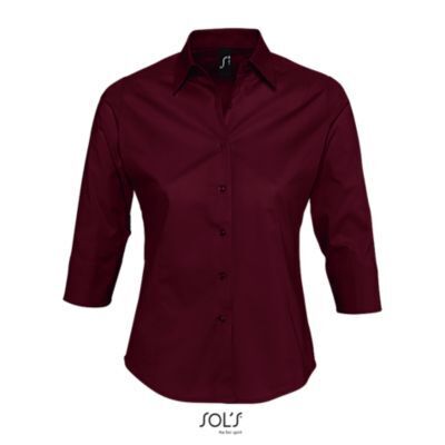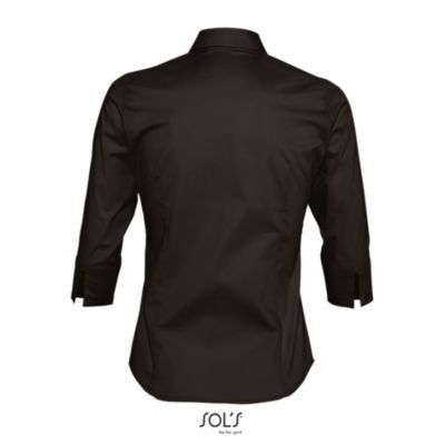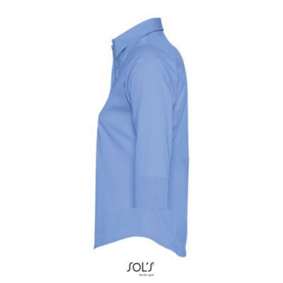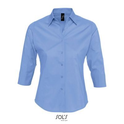 ЖЕНСКАЯ РУБАШКА ИЗ ТКАНИ СТРЕЙЧ С РУКАВОМ 3/4. Приталенная модель; Рукав 3/4 с отворотом и разрезом; Воротник на одной пуговице; Планка с 7 пуговицами в цвет изделия; Вытачки спереди и на спине