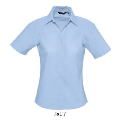 РУБАШКА ЖЕНСКАЯ «ОКСФОРД» С КОРОТКИМ РУКАВОМ. Приталенная модель; Короткий рукав; Классический воротник; Планка с 7 пуговицами в цвет изделия; Вытачки на груди