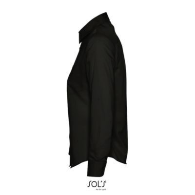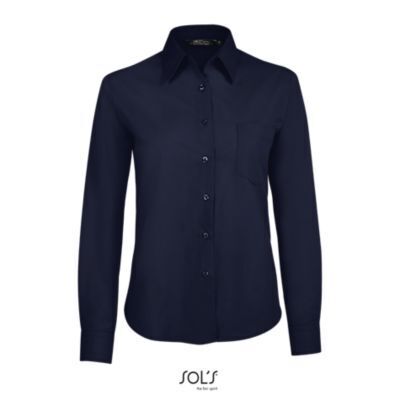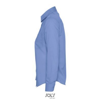 РУБАШКА ЖЕНСКАЯ ИЗ ПОПЛИНА С ДЛИННЫМ РУКАВОМ. Приталенная модель; Длинный рукав; Жесткий воротник; Регулируемые манжеты на 2 пуговицах и разрез рукава "капуцин"; Планка с 7 пуговицами в цвет изделия; Нагрудный карман слева
