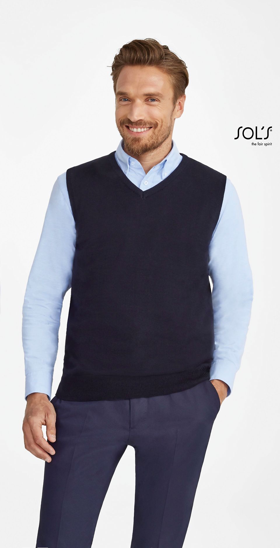 ЖИЛЕТ БЕЗ РУКАВОВ УНИСЕКС С V-ОБРАЗНЫМ ВЫРЕЗОМ. Ребристые проймы и низ 1x1 с эластановой нитью для лучшей эластичности; Зауженные проймы; Прямой срез