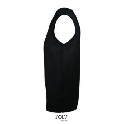 ЖИЛЕТ БЕЗ РУКАВОВ УНИСЕКС С V-ОБРАЗНЫМ ВЫРЕЗОМ. Ребристые проймы и низ 1x1 с эластановой нитью для лучшей эластичности; Зауженные проймы; Прямой срез