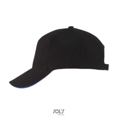 БЕЙСБОЛКА ИЗ 5 КЛИНЬЕВ. 5 клиньями; жесткий козырек "сэндвич"; 4 вышитых отверстия для вентиляции; регулируемая металлическая застежка