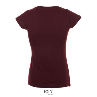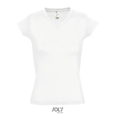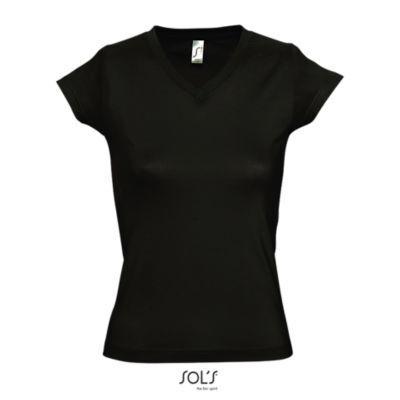 ФУТБОЛКА ЖЕНСКАЯ С V-ОБРАЗНЫМ ВЫРЕЗОМ. Усиливающая лента на шее; Короткие рукава; Приталенный крой; V-образный вырез с ребристыми краями; Покрой и пошив