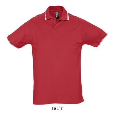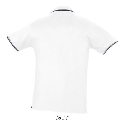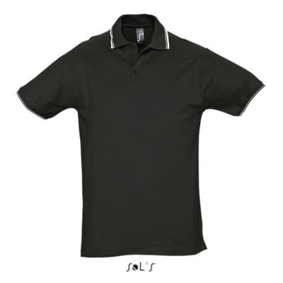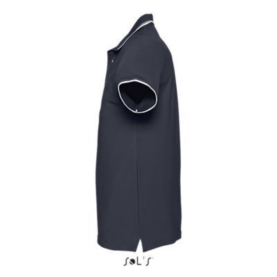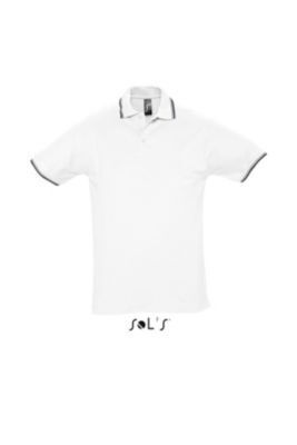 МУЖСКАЯ РУБАШКА ПОЛО С КОРОТКИМ РУКАВОМ. Ребристый воротник и манжеты; Контрастная подкладка на воротнике; Короткие рукава; Усиленный воротник с 4 жемчужно-белыми пуговицами; Контрастная серая саржевая полоса на вырезе, пуговицах, боковых разрезах + бирка внизу рукава; Сшитый разрез; Облегающий крой; Запасная пуговица на внутреннем боковом шве