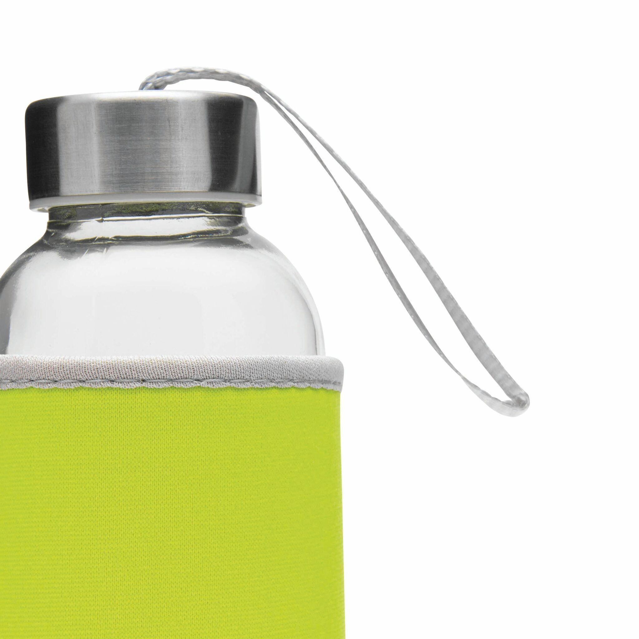 Стеклянная бутылка TAKE WELL: закручивающаяся крышка, петля для переноски, цветной защитный чехол, объем ок. 450 мл