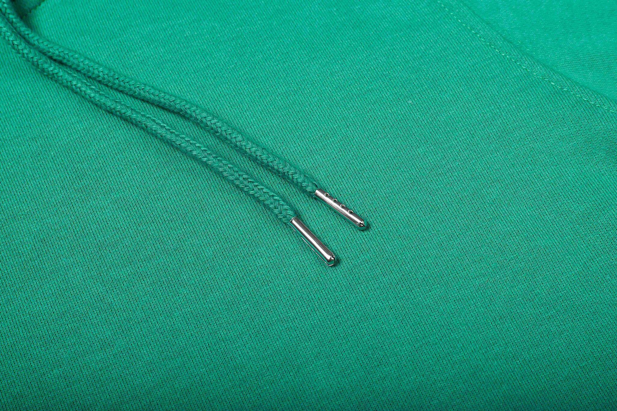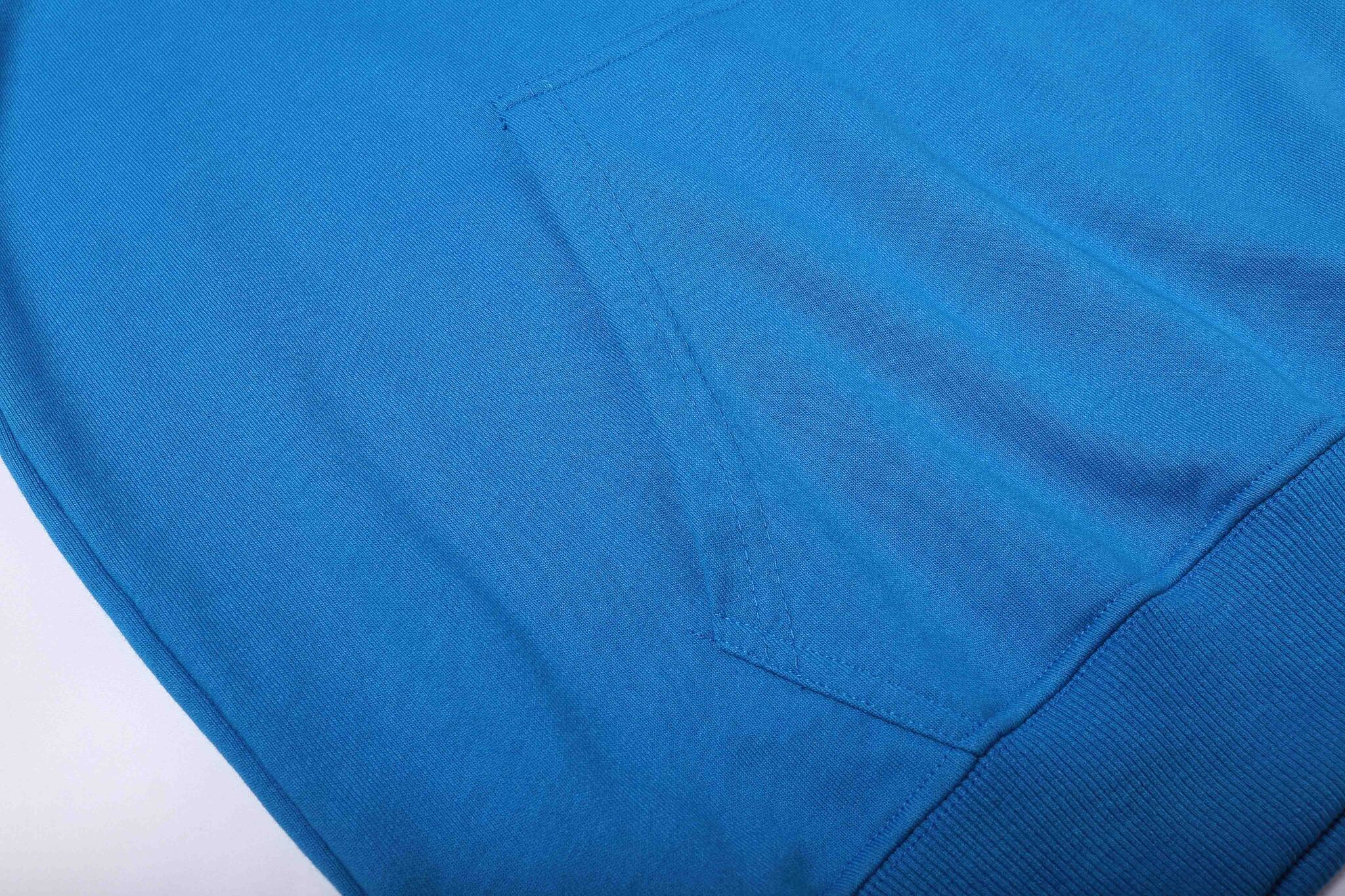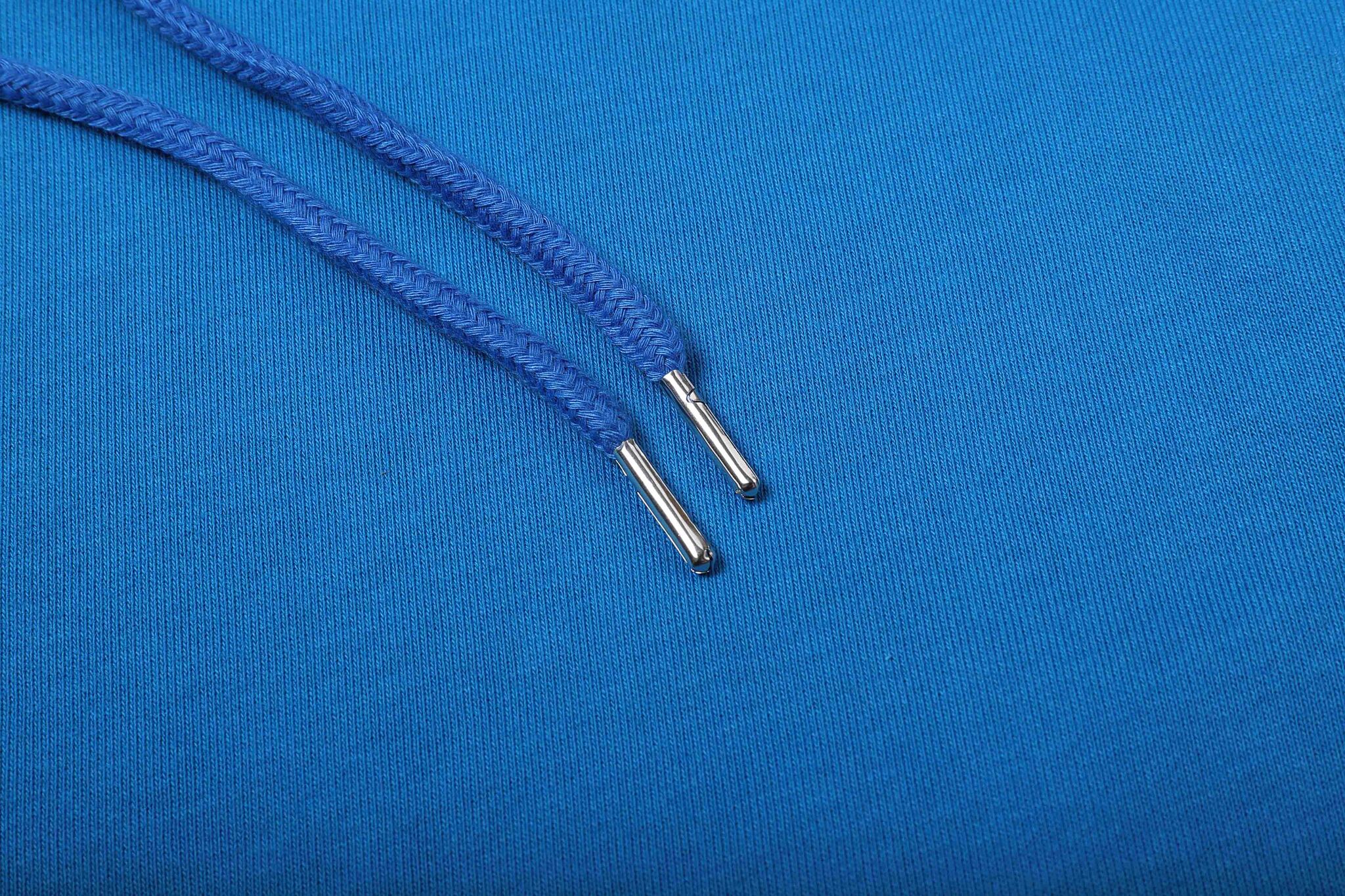 100% хлопок плотность 280 г/м2. Подкладка - френч терри, 3 нити. Эластановая резинка по низу и манжетам, втачка на рукавах, карман кенгуру, капюшон с люверсами и кулиской.