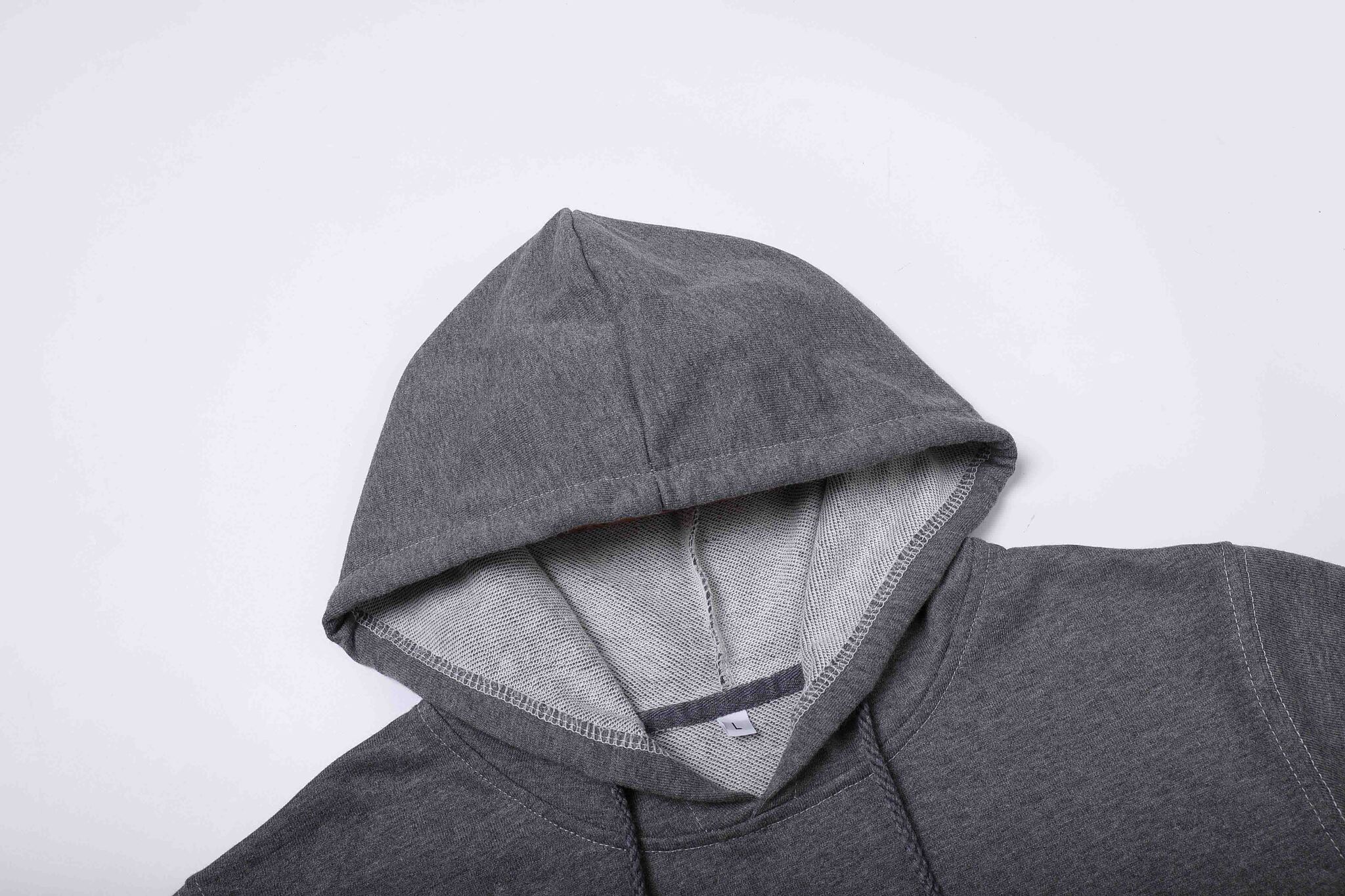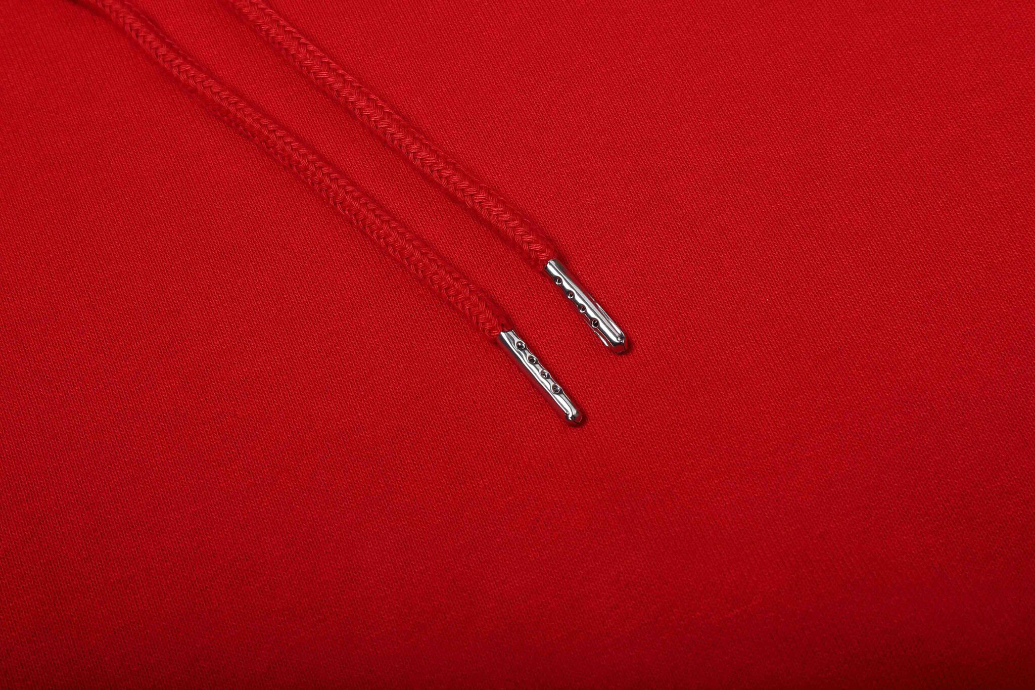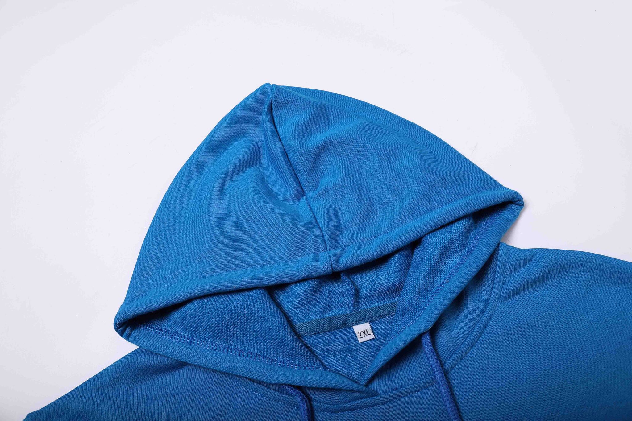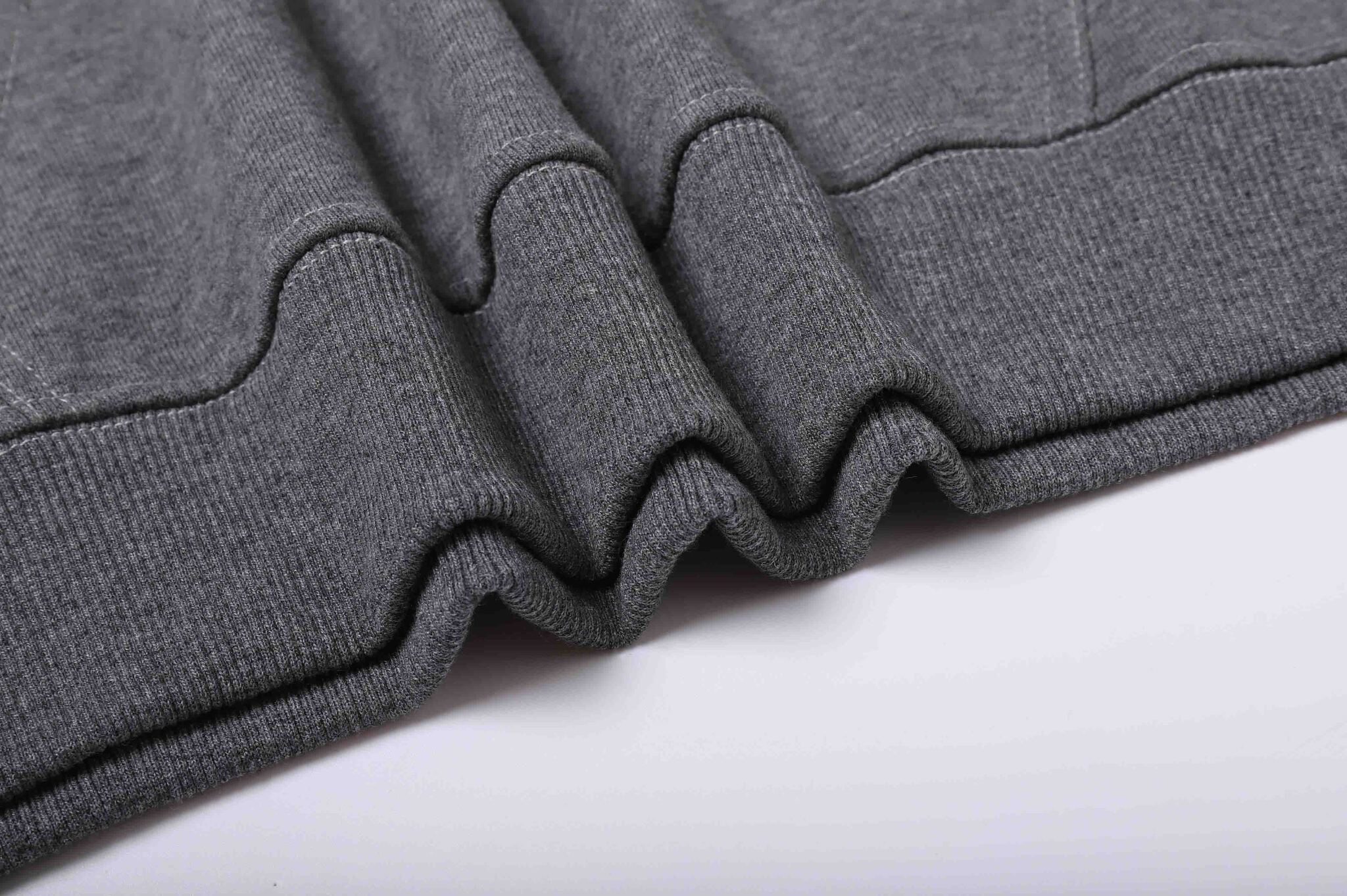 100% хлопок плотность 280 г/м2. Подкладка - френч терри, 3 нити. Эластановая резинка по низу и манжетам, втачка на рукавах, карман кенгуру, капюшон с люверсами и кулиской.