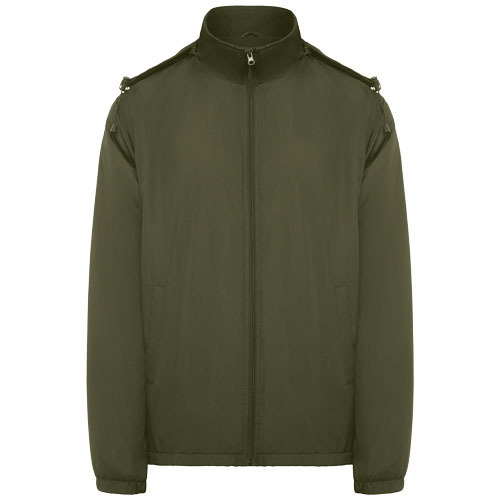 Легкая водонепроницаемая куртка. Высокий воротник и складной капюшон с регуляторами. Подкладка из микрофлиса. Молния спереди и защита для подбородка. Эластичные манжеты. Два боковых кармана на молнии. Внутренний левый нагрудный карман. Съемная этикетка. Водонепроницаемая. Ветрозащитная.