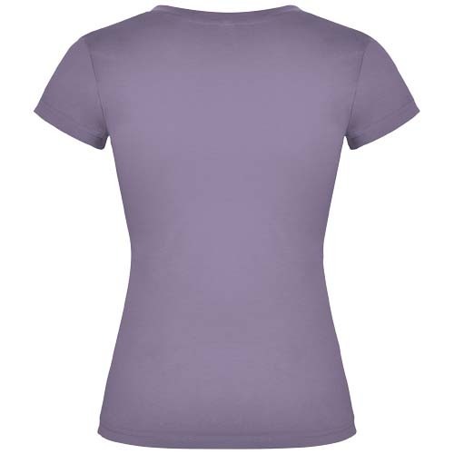 Женская футболка с короткими рукавами, горловиной с V-образным вырезом и окантовкой в рубчик 1 х1. Приталенный крой с боковыми швами. Съемная этикетка.