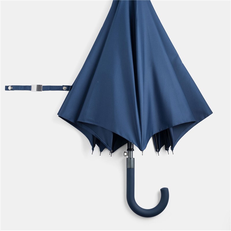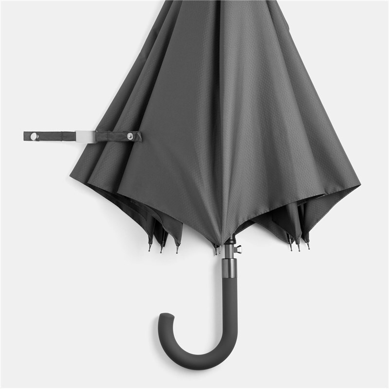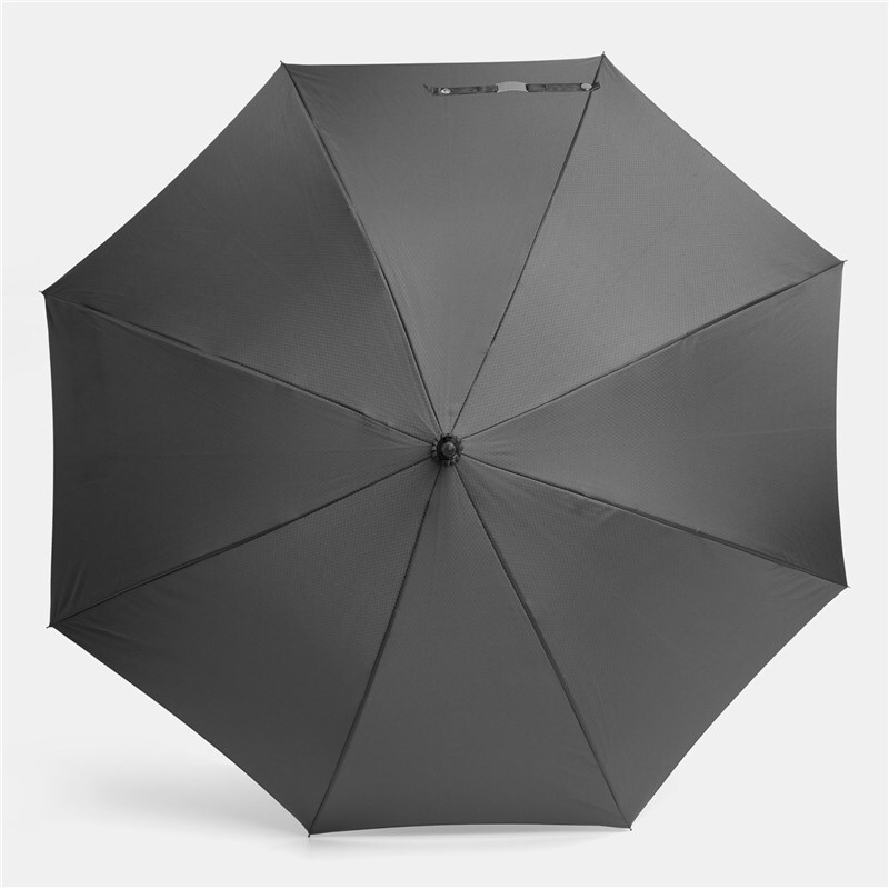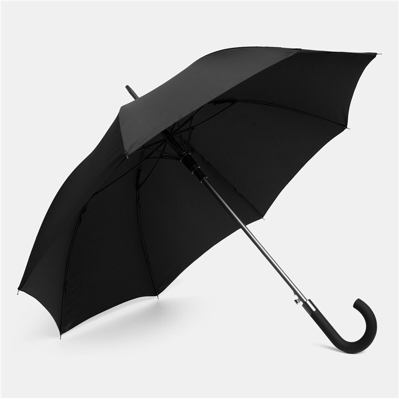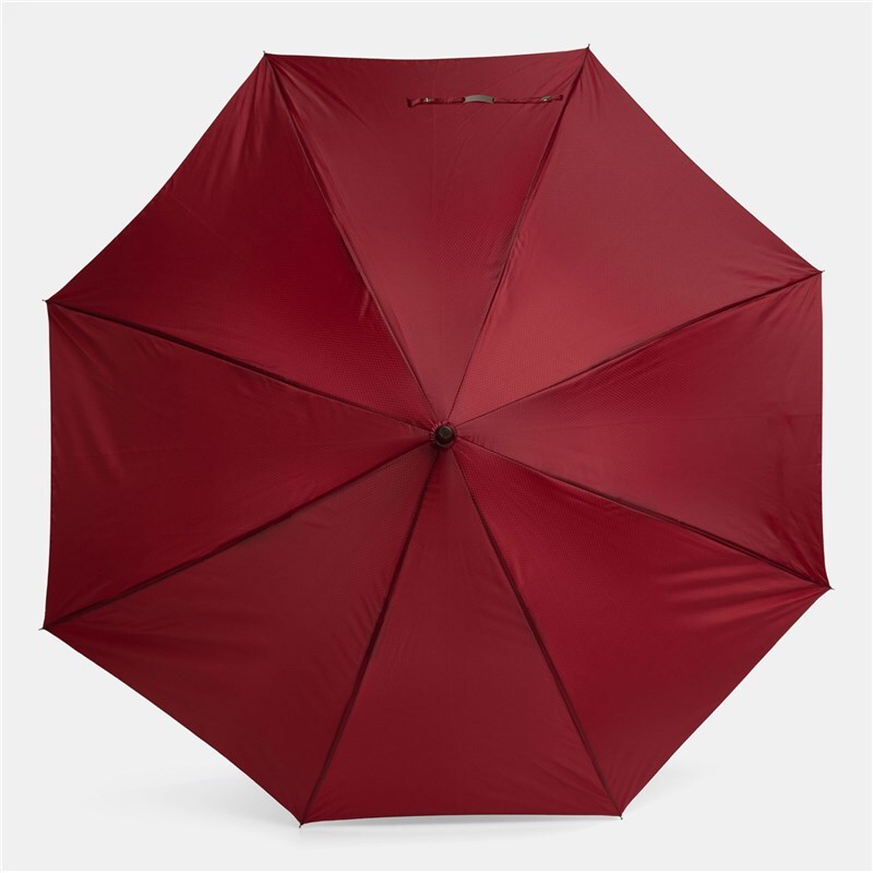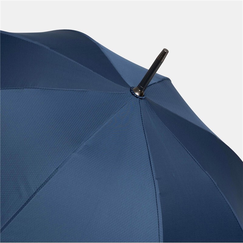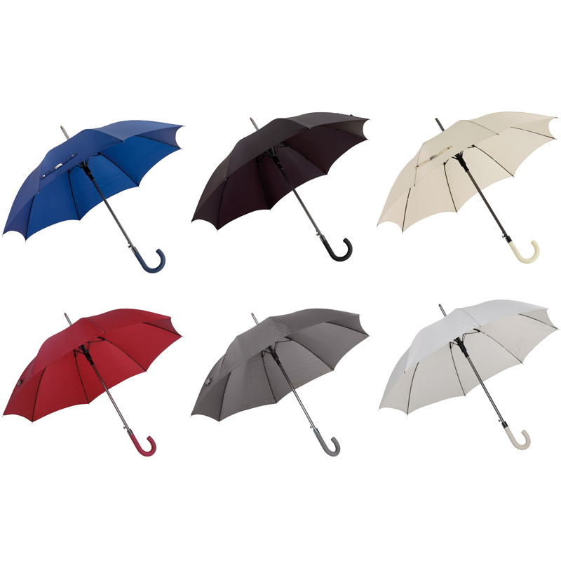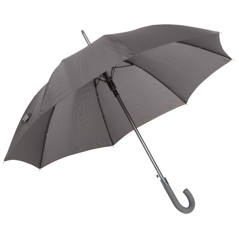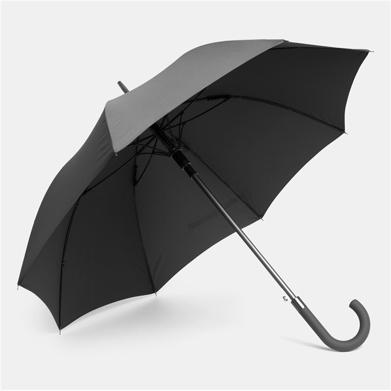 Автоматический зонт JUBILEE алюминиевый стержень, шины из стекловолокна, металлические наконечники подходящего цвета, закругленная ручка с резиновым покрытием, купол из полиэфирной ткани с чехлом с сотовой фактурой, стягивающий ремень с застежкой на кнопку и металлической пластиной для логотипа.